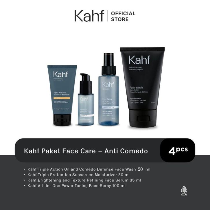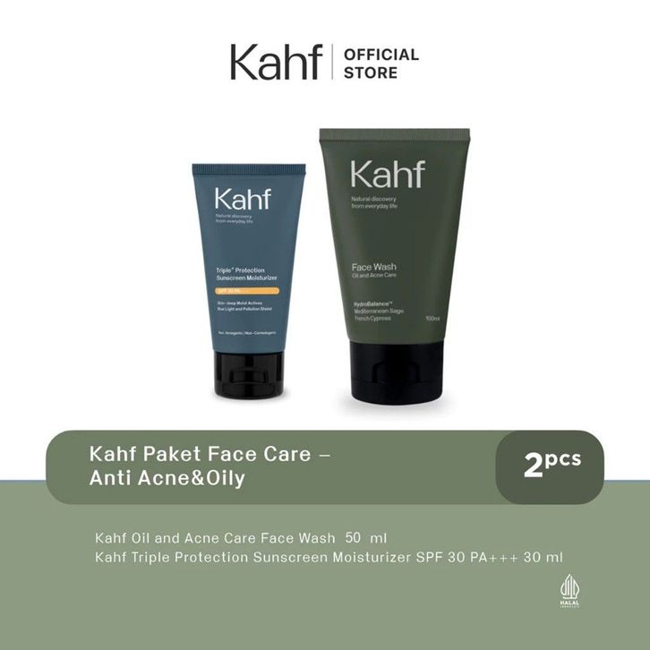 BUNDLE SET KAHF Face Wash / Sabun Wajah Pria Triple Action Oil Comedo Defense Acne Gentle