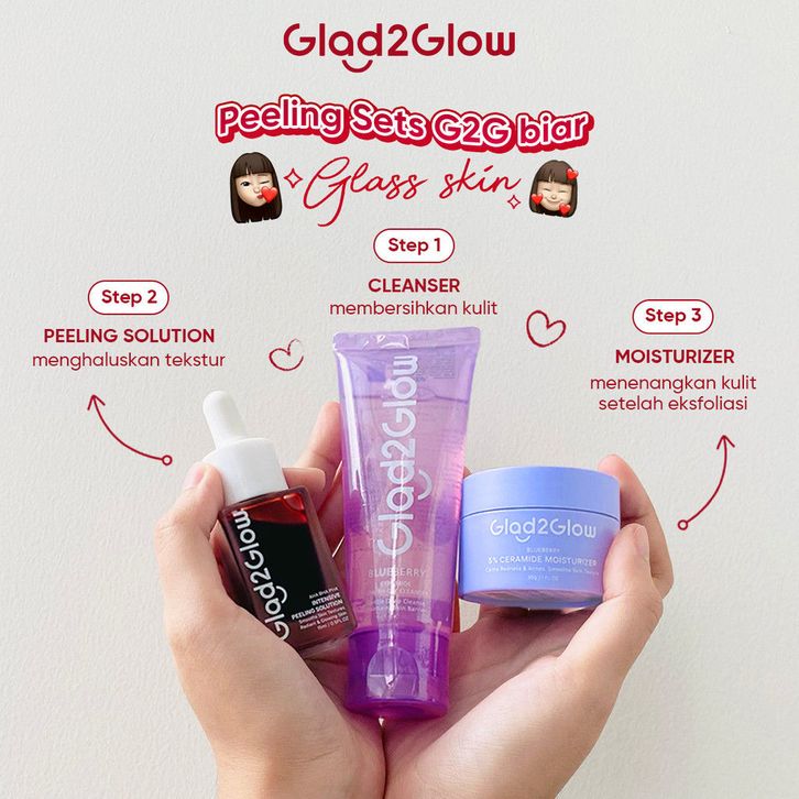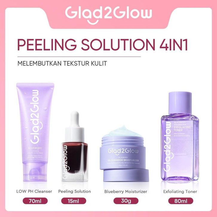Paket Glad2Glow Peeling Paket all in 1 Skincare Set 2/3/4 PCS Barrier Skincare Paket-Peeling solution+Blueberry Moistur