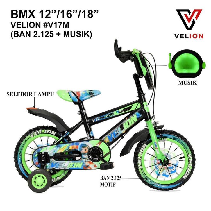SEPEDA ANAK Laki BMX VELION V17M (Ban 2.125 + Musik) V15 - UKURAN 12 / 16 / 18 INCH ORIGINAL - SUPER
