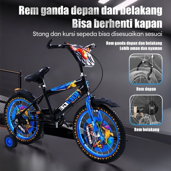 BEIGE Sepeda Anak 2-12Tahun Rangka Baja Karbon Roda Pelatih Lampu Aman Tahan Lama untuk Belajar