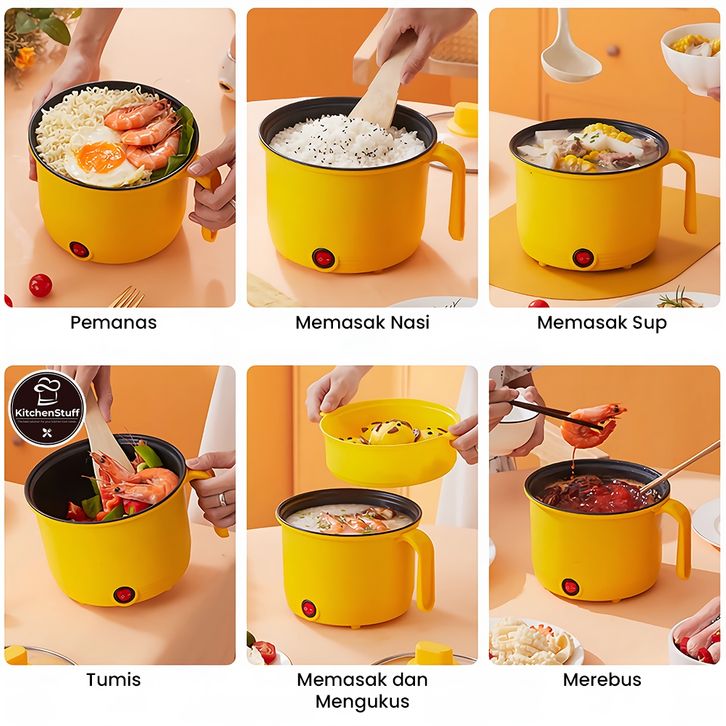 BEST Panci Listrik 1.8L Dengan Pengukus Plastik - Teflon Anti Lengket - Cepat Panas | KITCHEN STUFF