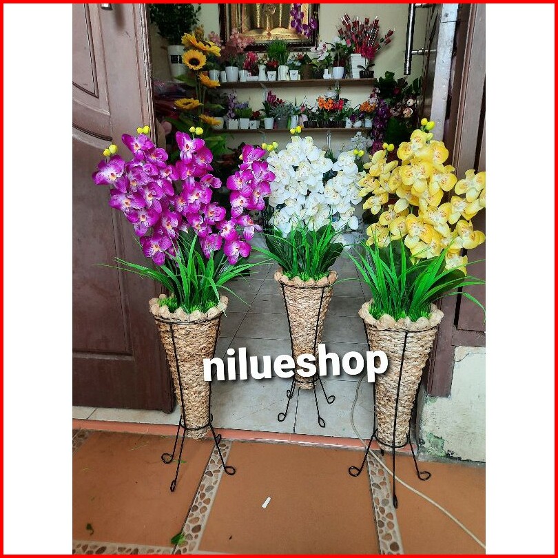 Bunga Anggrek Artificial Pot Pelepah Anyam Standing Home Dekorasi Dekorasi Rumah Bunga Pojok