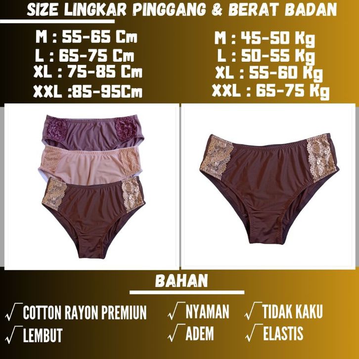 Cd Wanita Dewasa 6 Pcs Celana Dalam Perempuan Motif Renda Cantik & Elegan Size M L Xl Xxl
