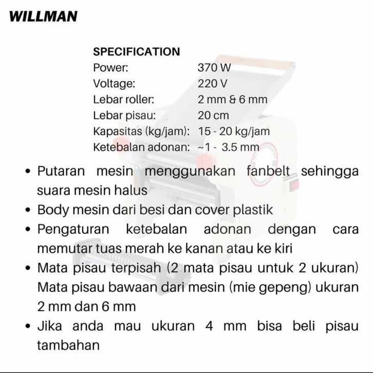 Terlaris Willman DJJ 200 C Mesin Penggiling / Gilingan Mie Willman Molen Kulit Pastel Pangsit Dimsum Elegan