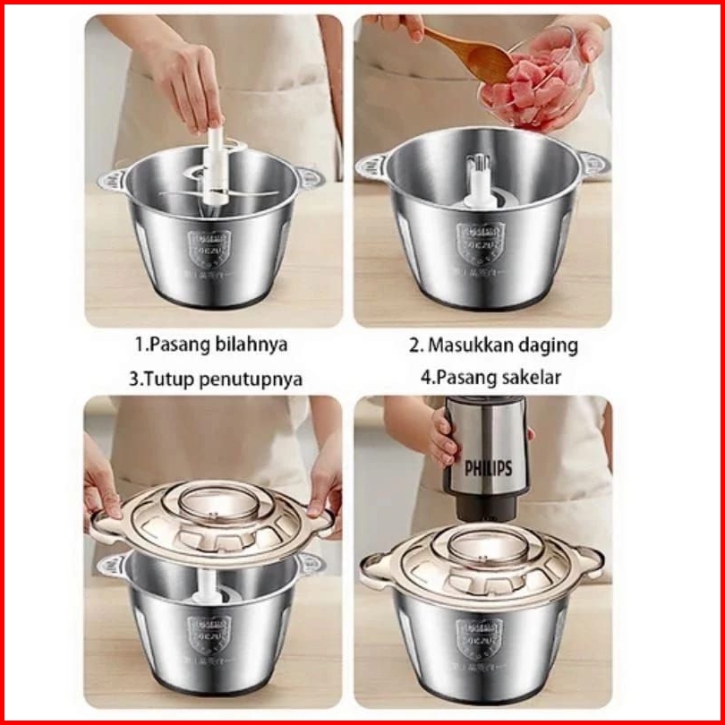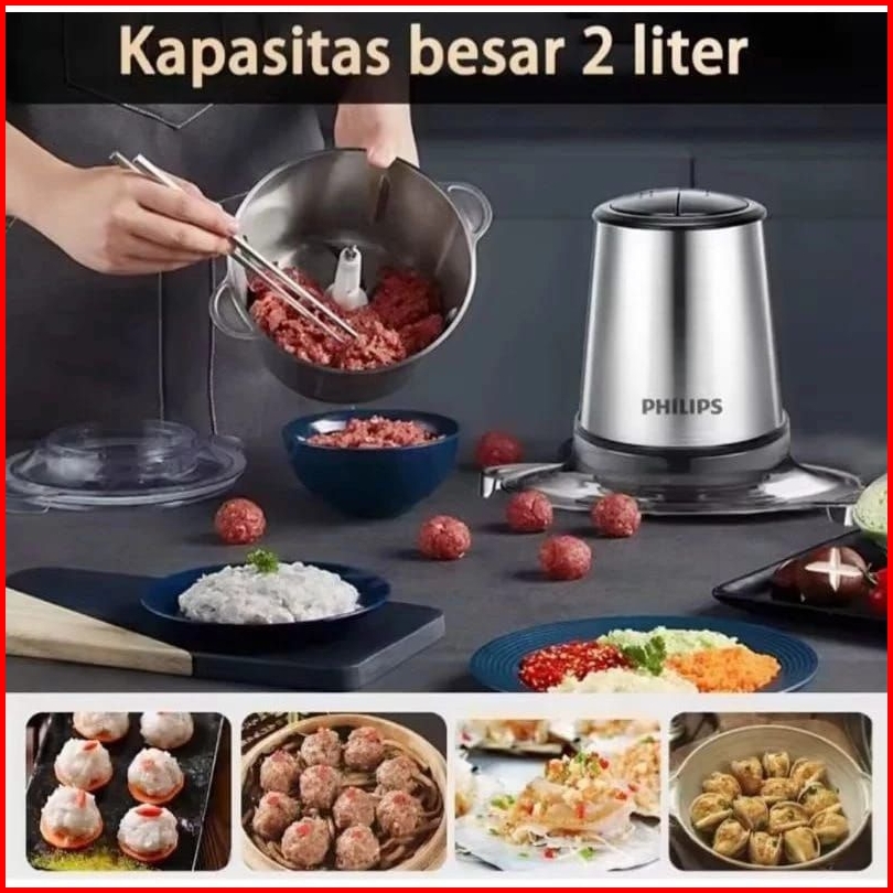 Terbaru Paling Laris...promo Sale Philips Penggiling Blender Chopper Penggiling Daging Listrik 400w Food Chopper 2 Liter