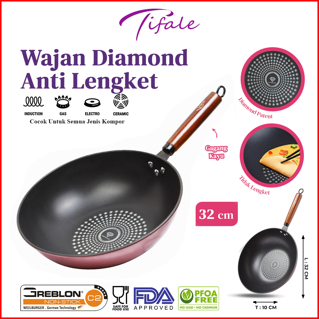 Ready Stock Tifale Diamond Wokpan Wajan Penggorengan Anti Lengket Batu Medis Ukuran 32cm