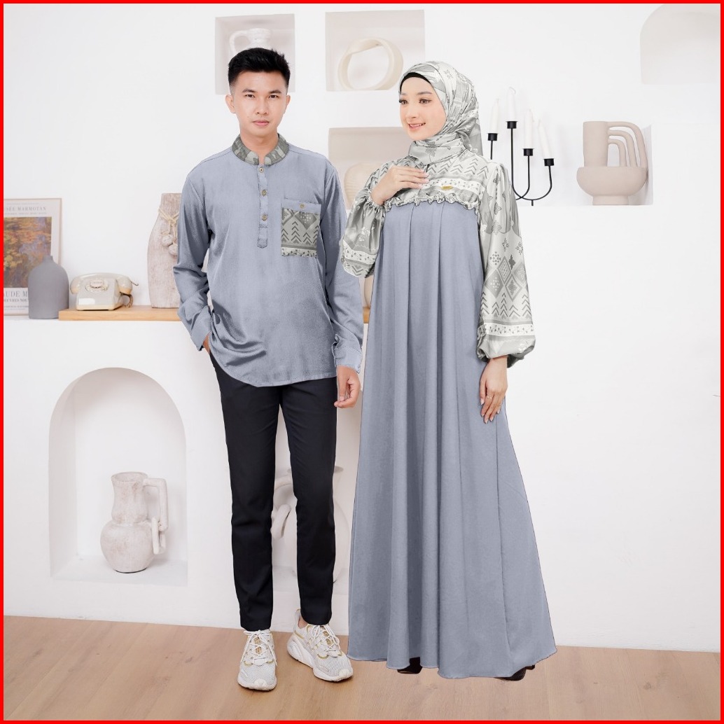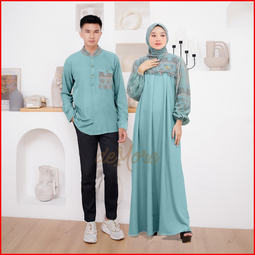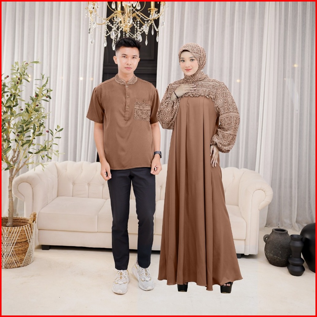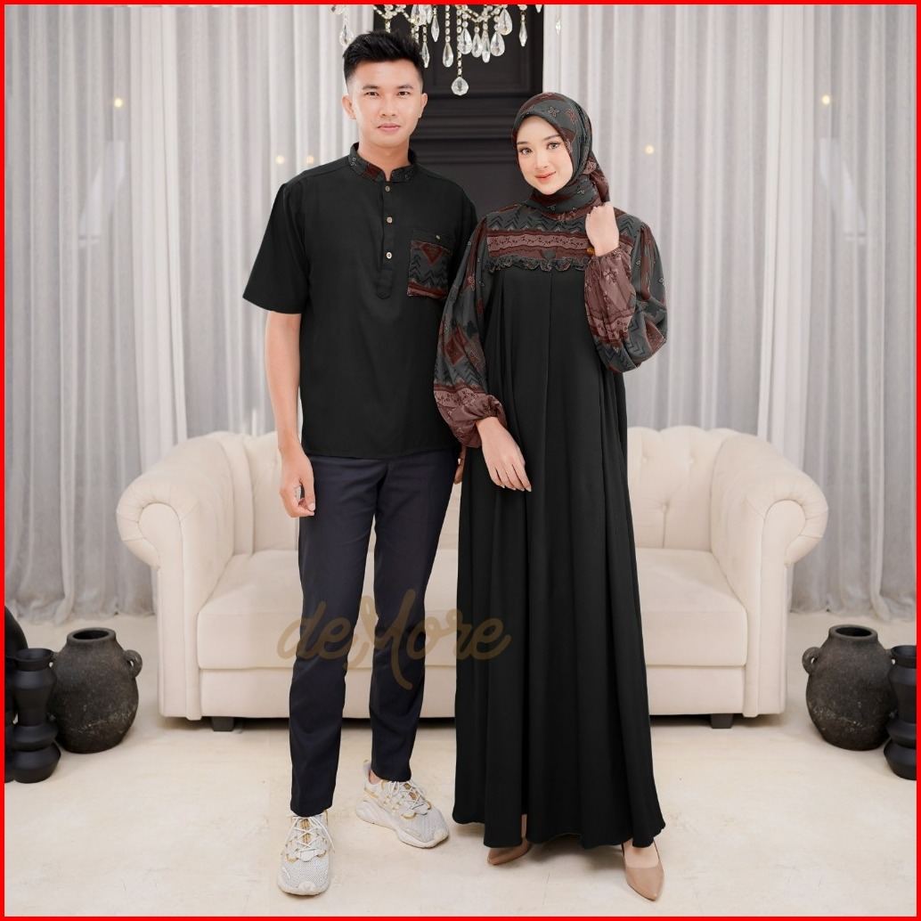 Ellena Gamis Set Couple Free Hijab Segiempat Motif Ethnic Matt. Torino Grade A Premium By Demore