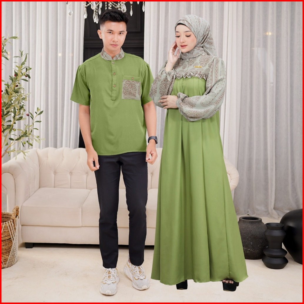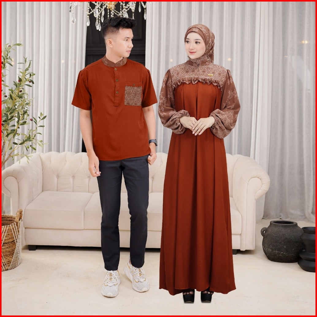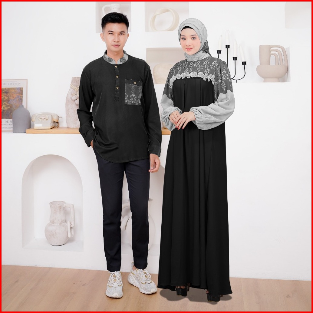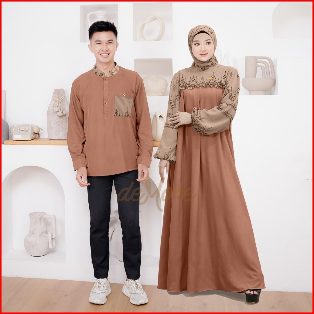 Ellena Gamis Set Couple Free Hijab Segiempat Motif Ethnic Matt. Torino Grade A Premium By Demore
