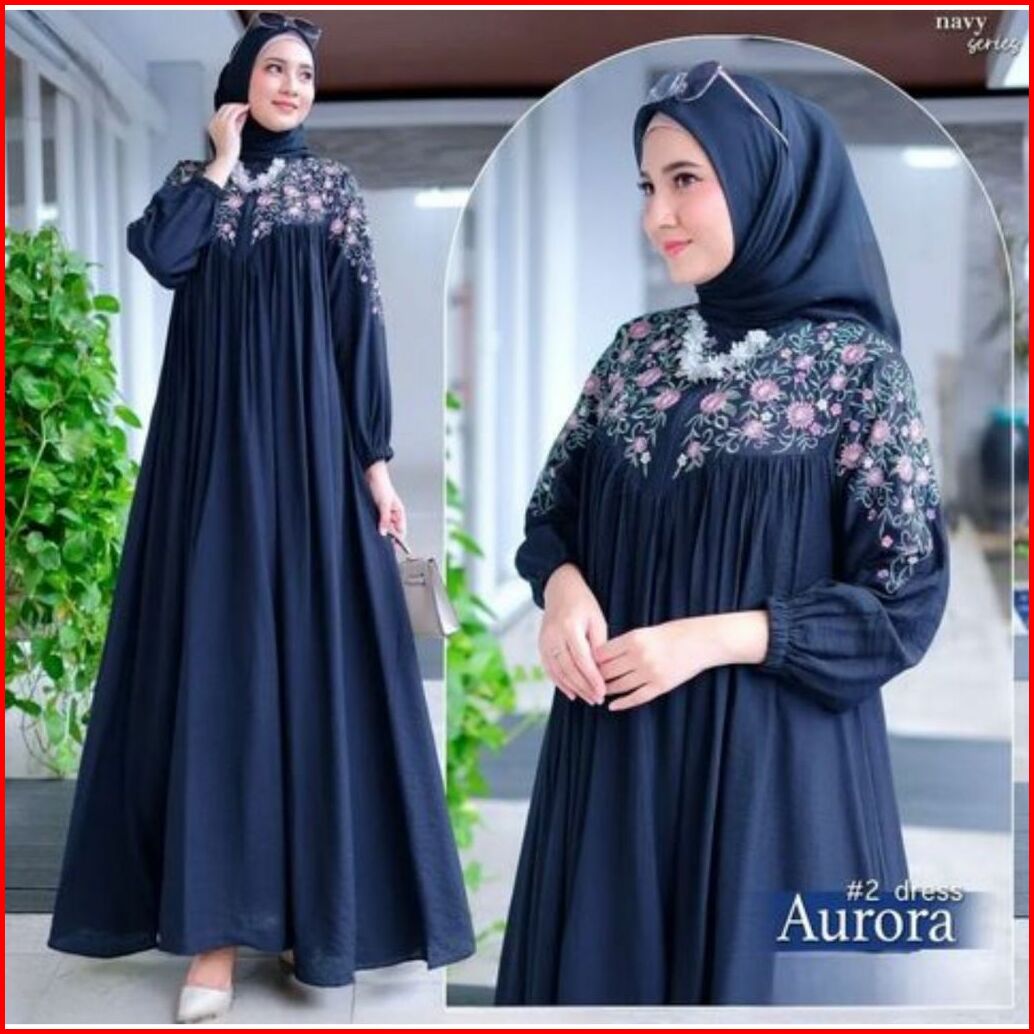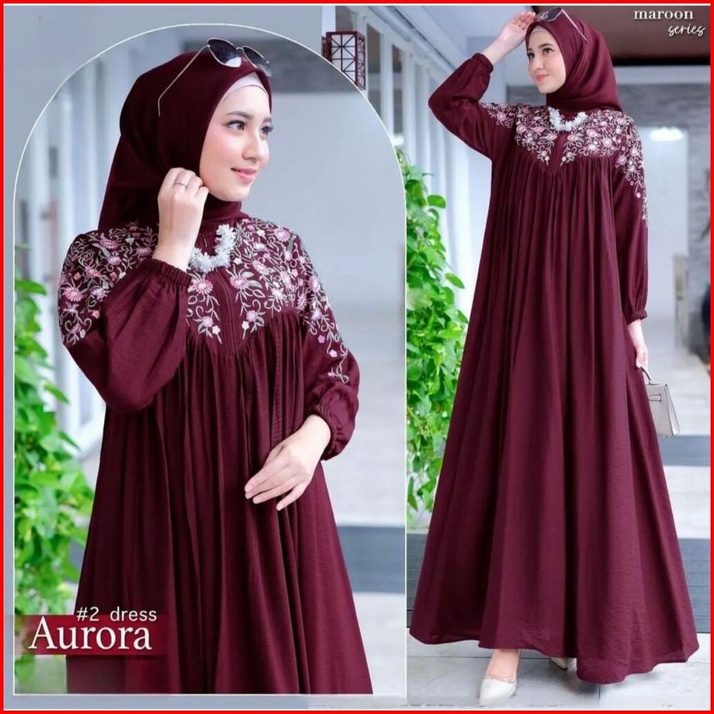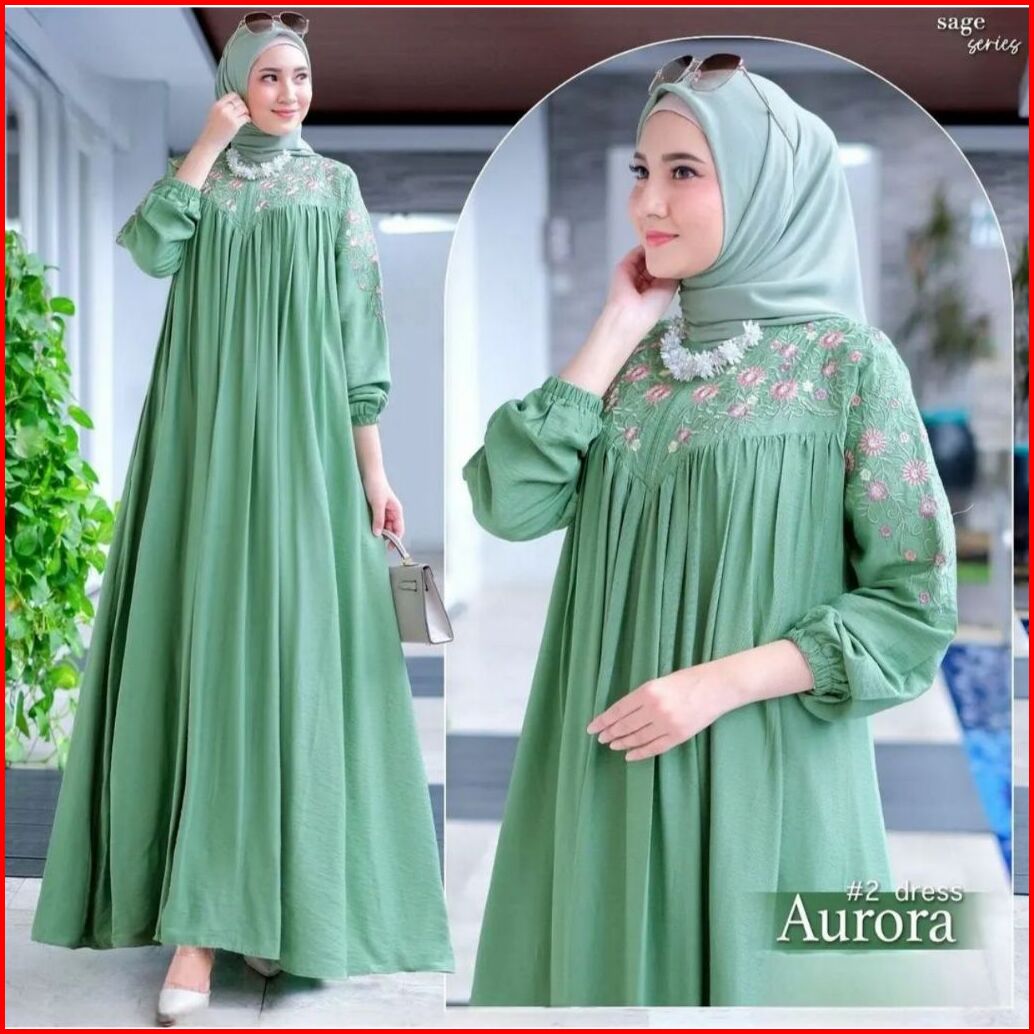 Aurora Dress Crinkle Airflow Mix Bordir Premium Dress Kondangan Gamis Pesta Mewah Elegan Gamis Muslim Wanita Kekinian