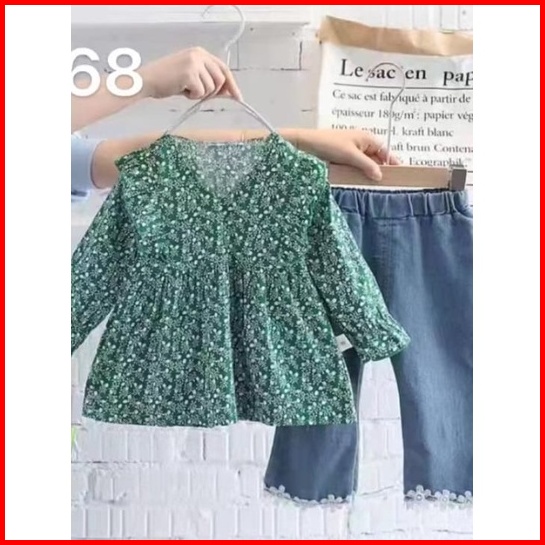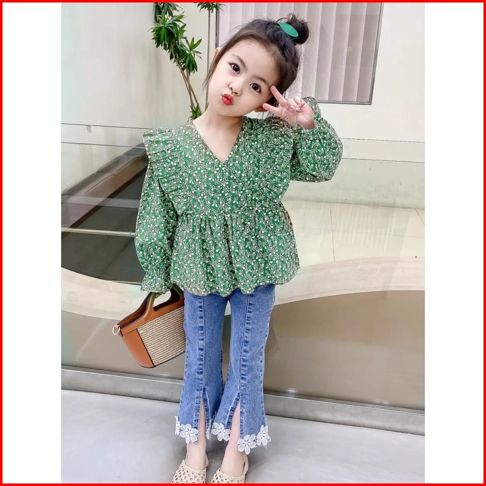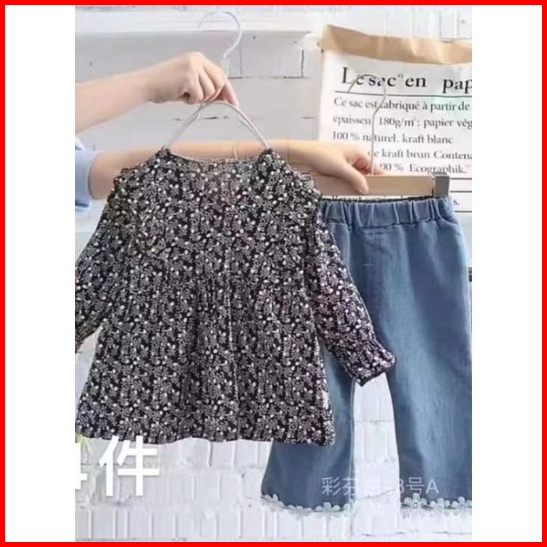 B391 - Setelan Cewek Modis Celana Jeans Impor Baju Setelan Cantik Anak Perempuan Setelan Anak Perempuan Best Seller
