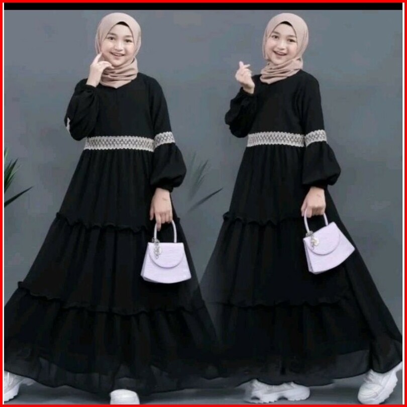 Baju Gamis Anak Putih Perempuan Usia 4-13 Tahun Variasi Renda Bahan Crinkle Airflow Terbaru Kekinian
