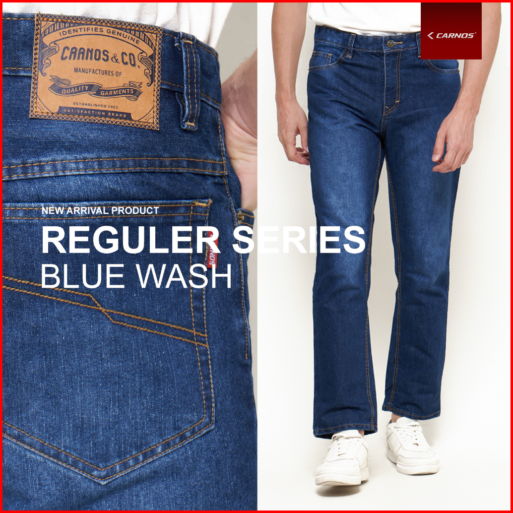 Carnos Ruglers Celana Jeans Pria Panjang Reguler Blue Wash Basic Denim