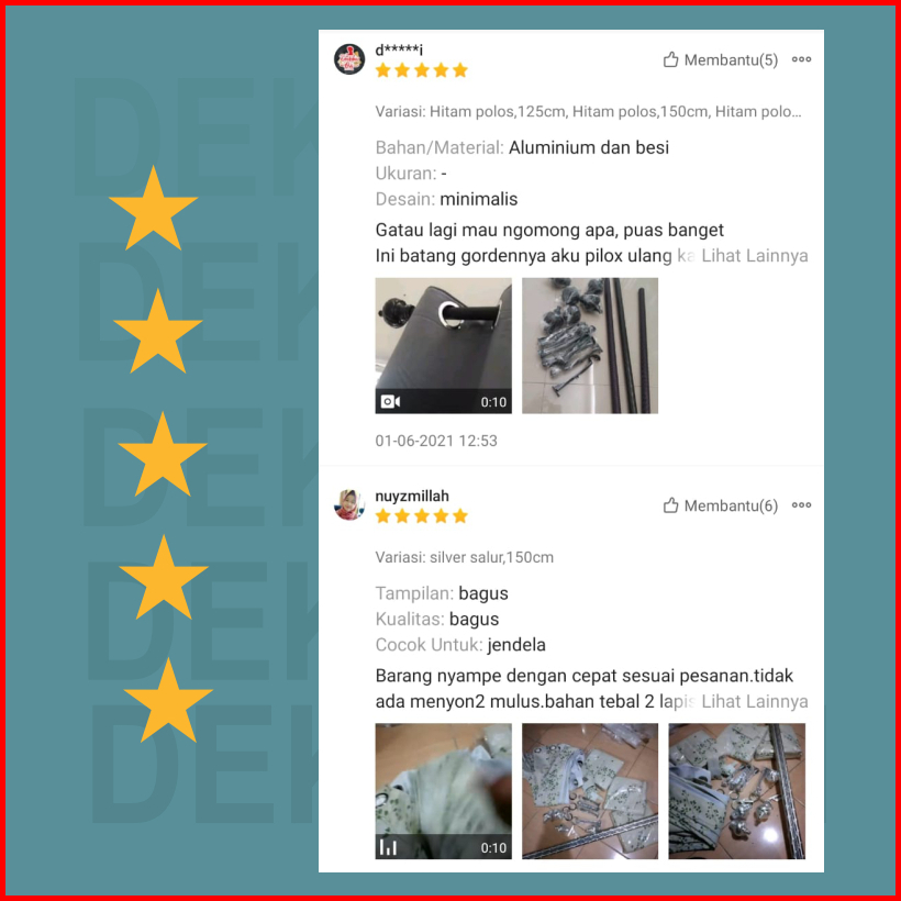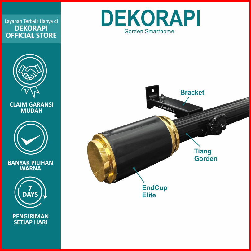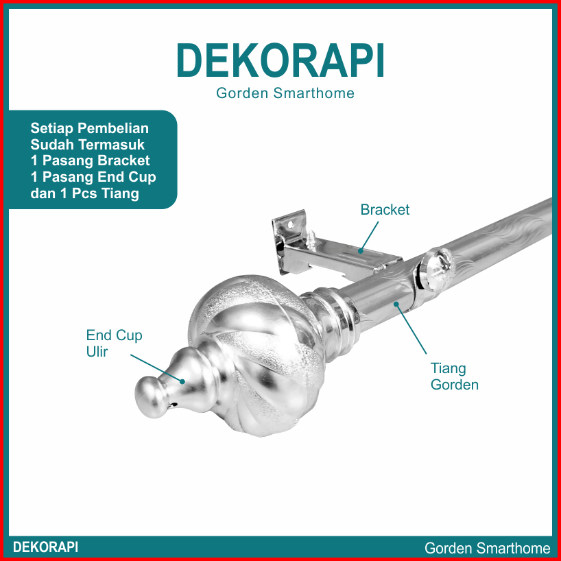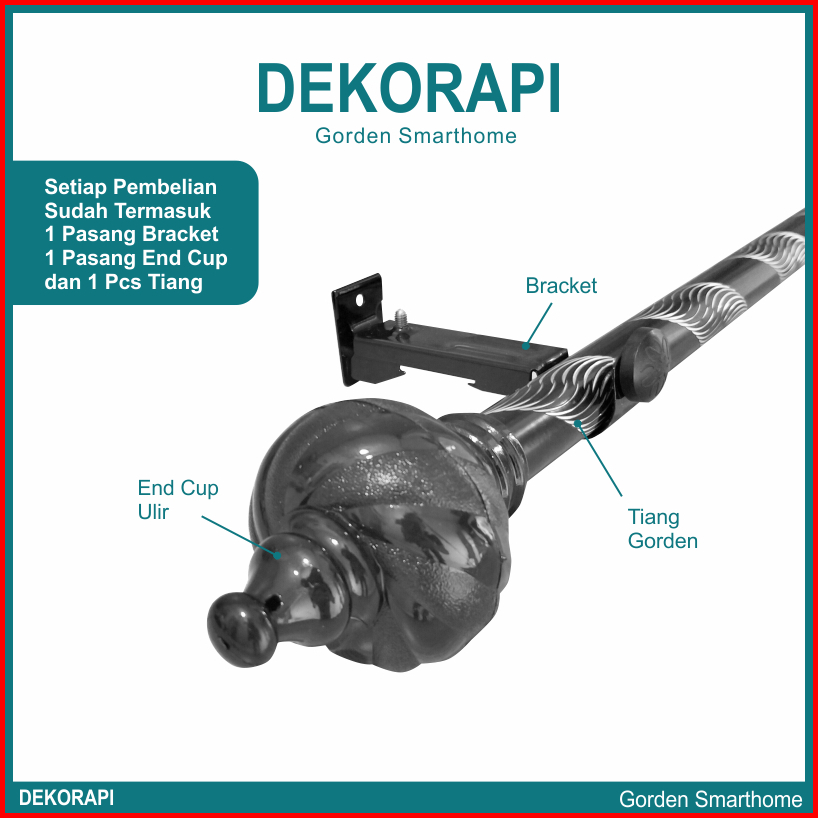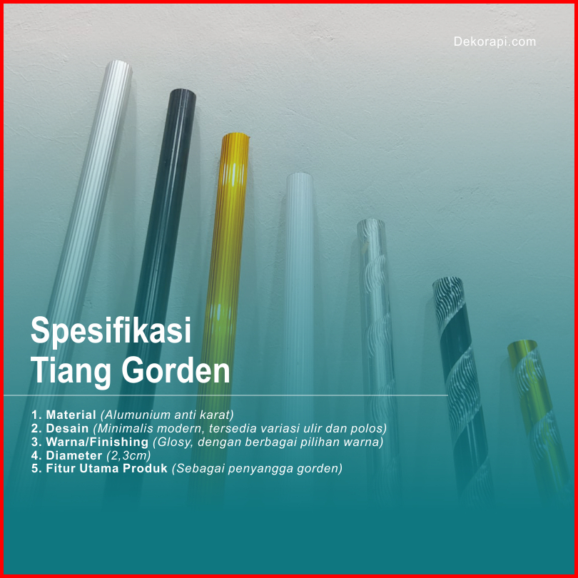 Dekorapi Batang Gorden Tiang Vitras Besi Gorden Rolet 100cm 125cm 175cm 200cm 300cm