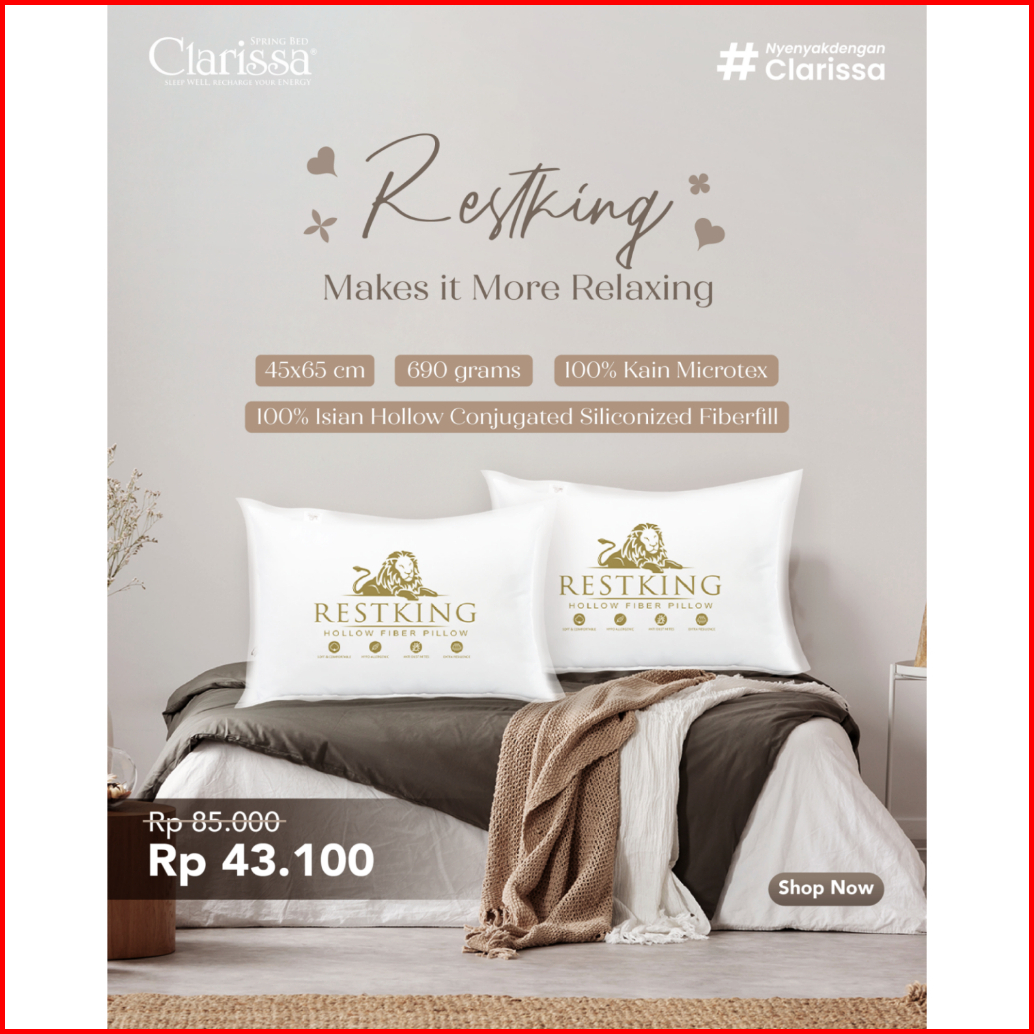 Bantal Restking 45x65 Cm 650 Grams Hollow Siliconized Fiber