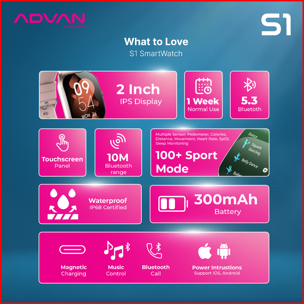 Promo Special Advan Smartwatch S1 Ips 2.01 Curve Display Ai Voice Bluetooth Calls Bluetooth 5.3 100 Sports Modes Long-la