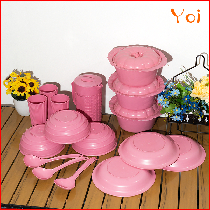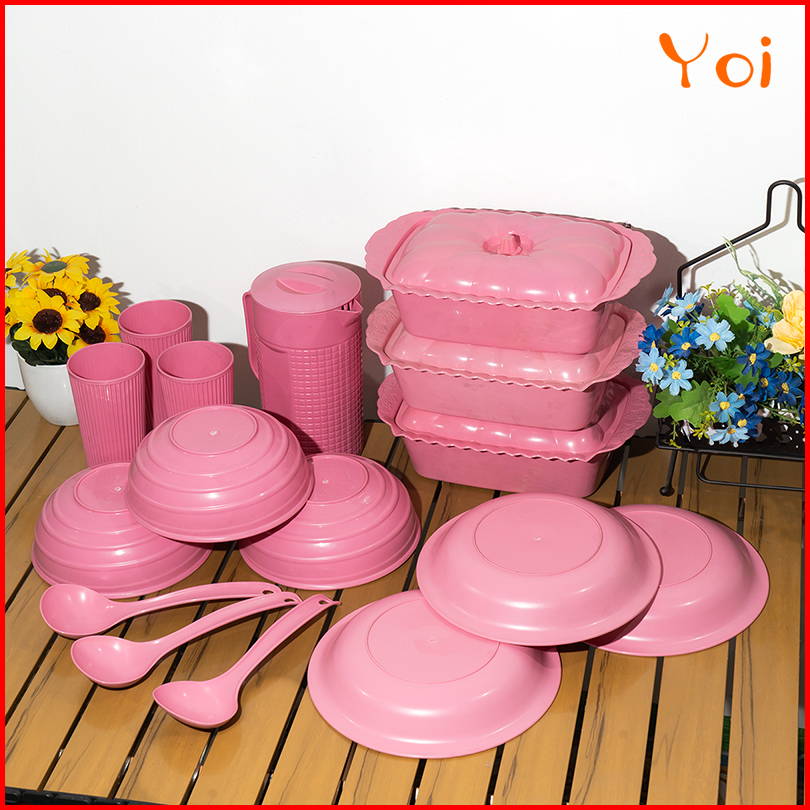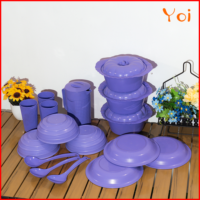Yoi - Set 16 Pcs Set Peralatan Makan Set Piring Mangkuk Teko Dan Gelas Cocok Untuk Acara Makan Bulat Yang Spesial Sendok
