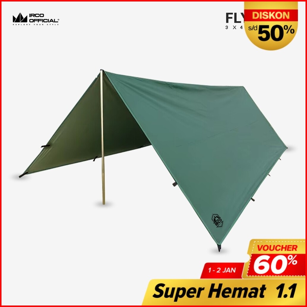 Irco Flysheet Waterproof 3x4 Meter Tenda 4 Orang - Plysheet 3x4m Anti Air 16 Loop - Bivak Camping