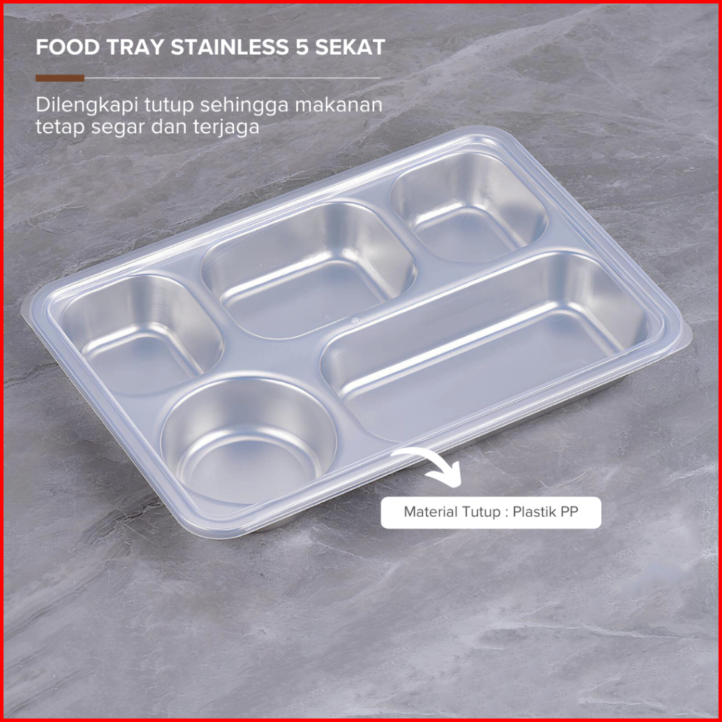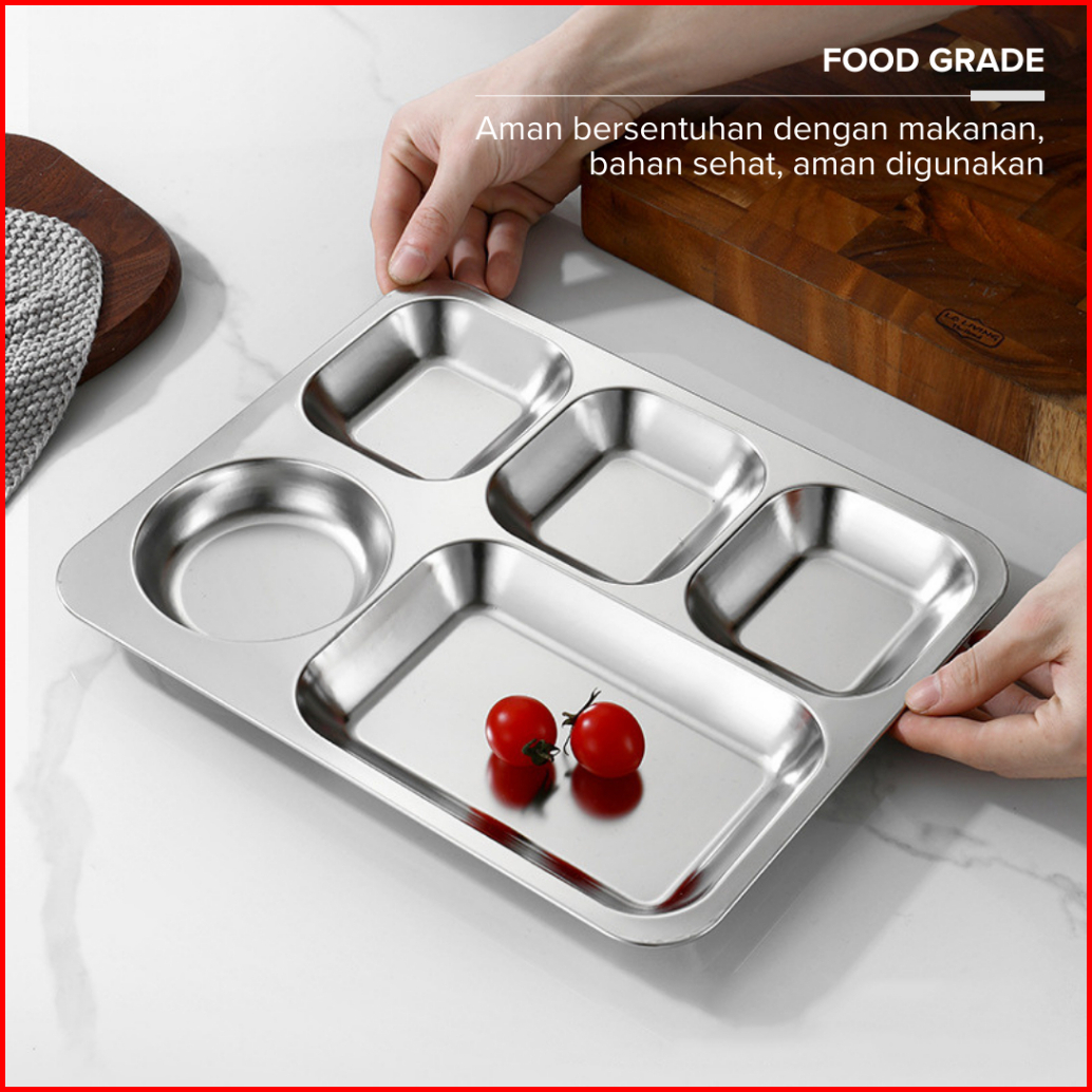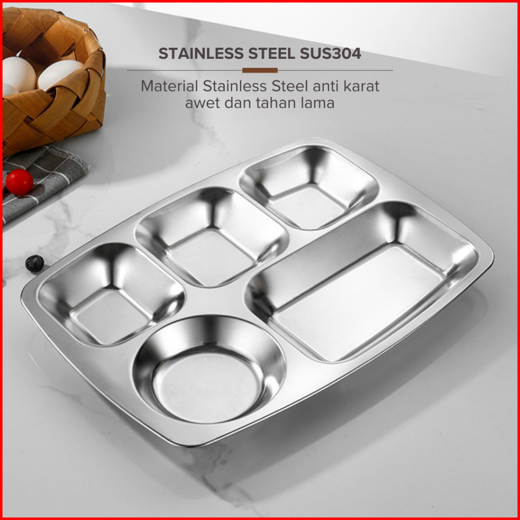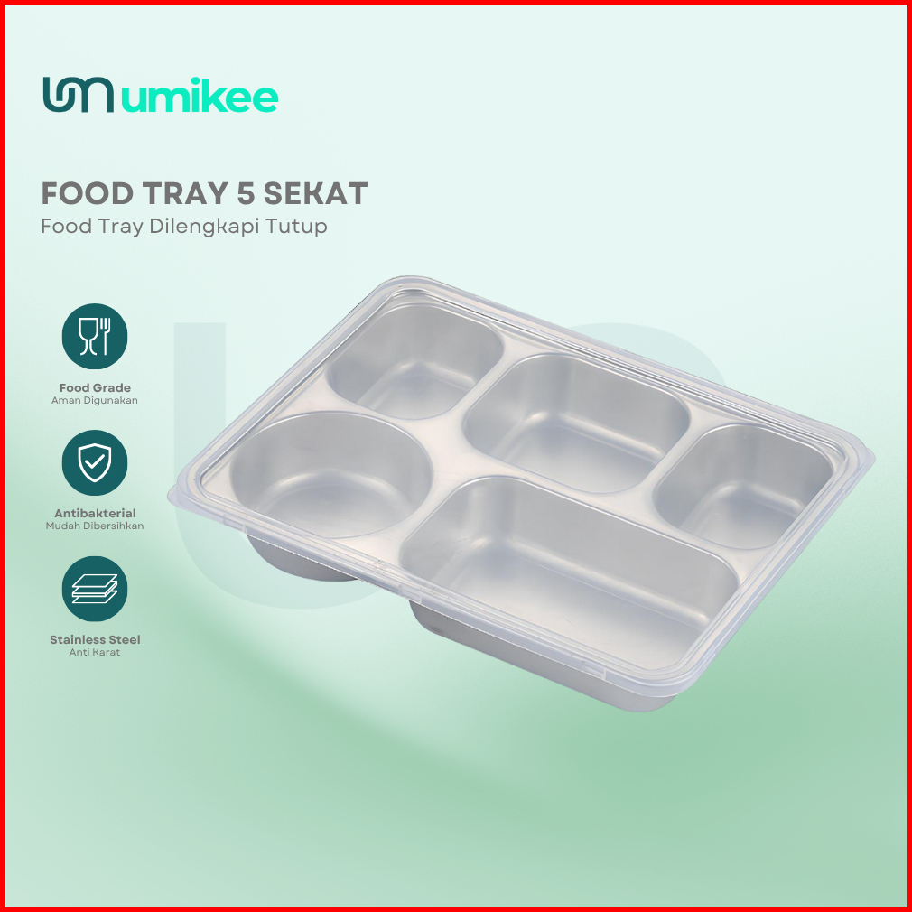 Umikee Piring Makan Stainless 5 Sekat Tutup Tebal Food Tray Stainless Lunch Box Sekat 5 Mestray Sekat 5 Stainless Steel