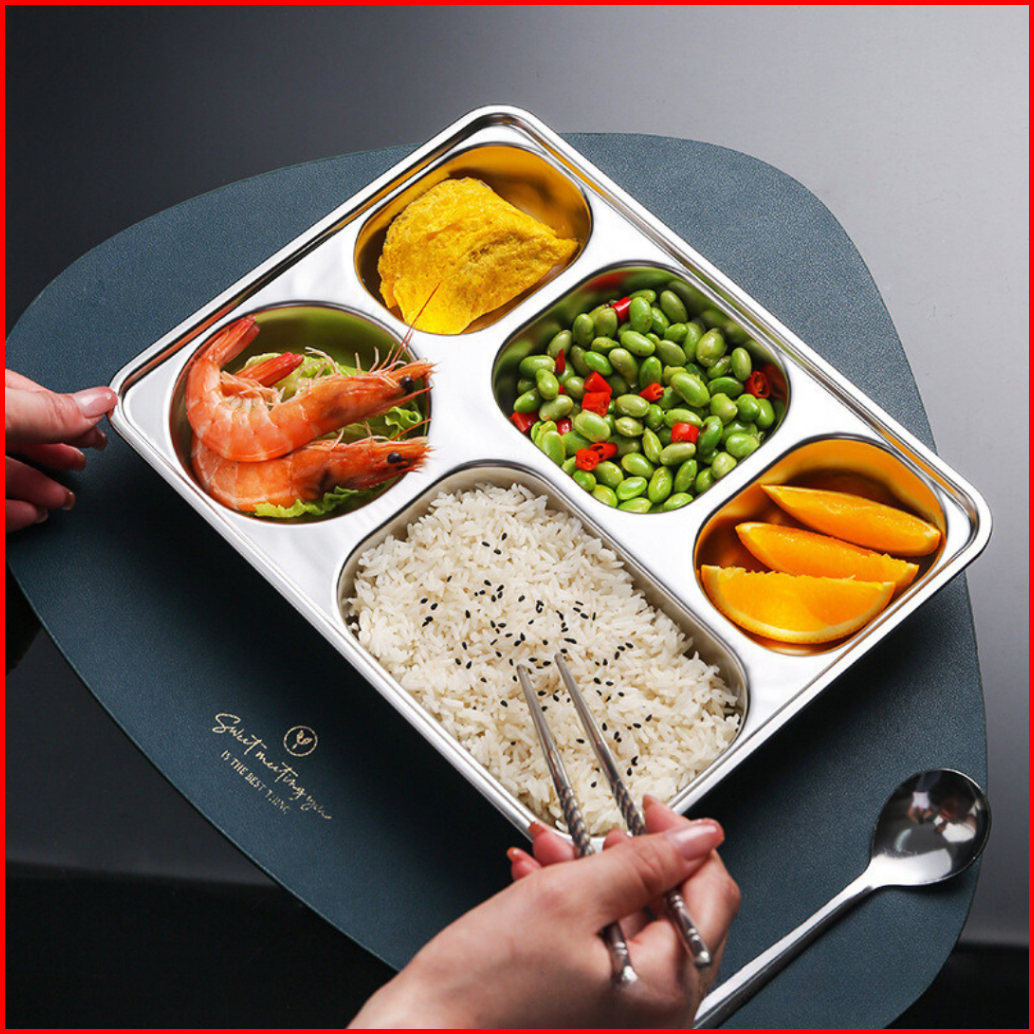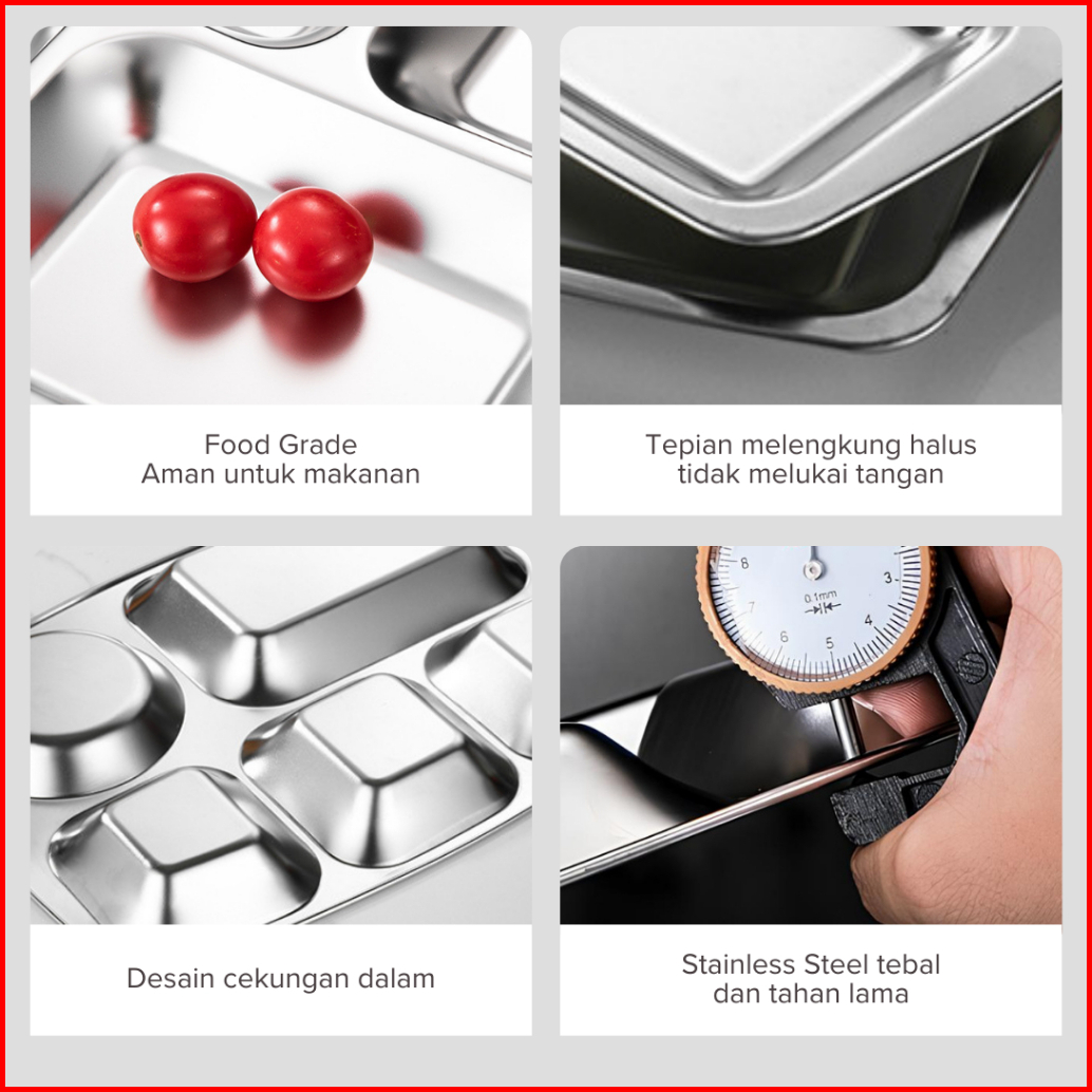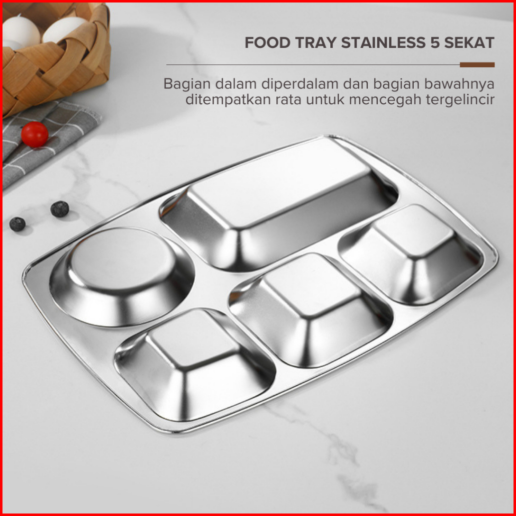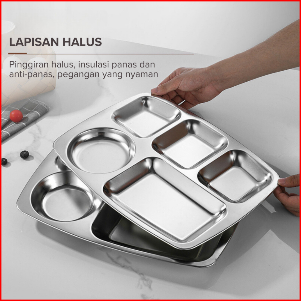 Umikee Piring Makan Stainless 5 Sekat Tutup Tebal Food Tray Stainless Lunch Box Sekat 5 Mestray Sekat 5 Stainless Steel