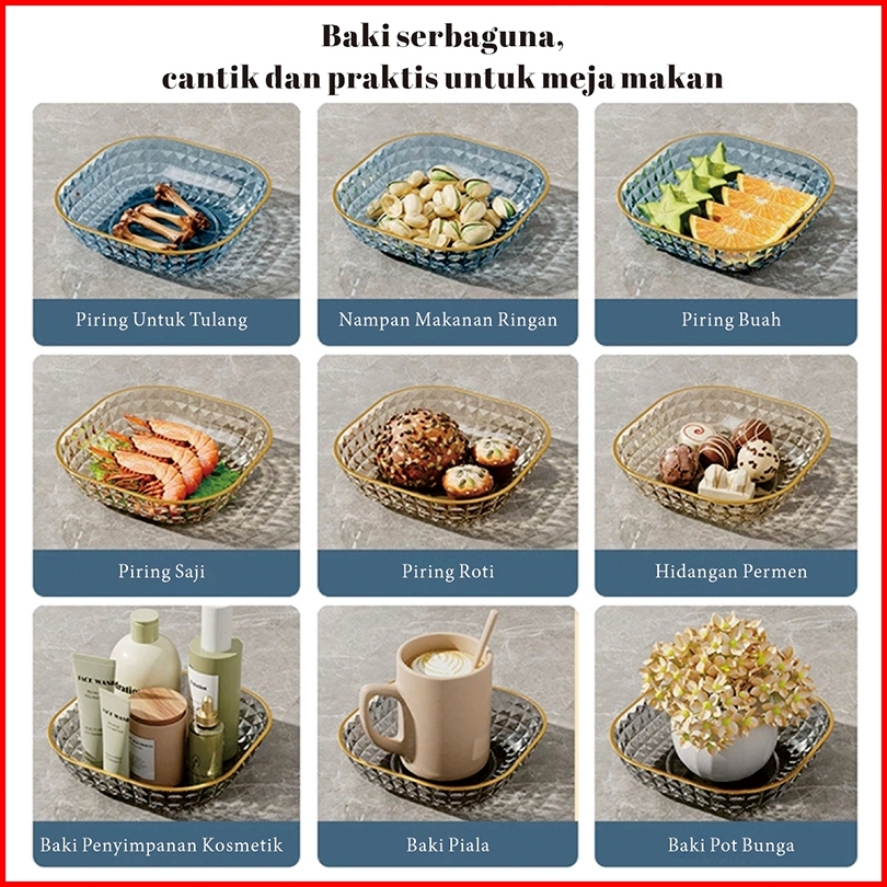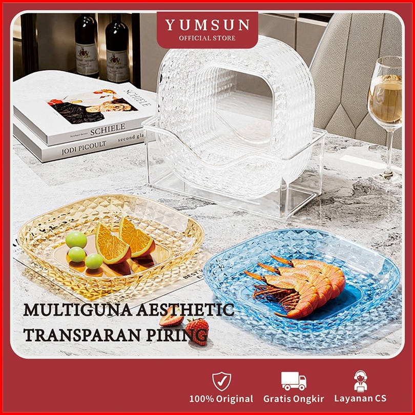 Yumsun 6pcs Set Piring Akrilik Aesthetic Piring Saji Kecil Mini Piring Buah Kue Plastik Transparan