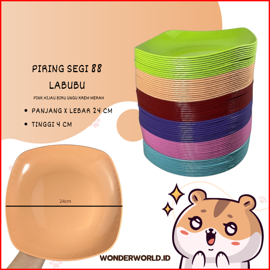 Isi 3 6 12 Pcs Piring Segi Labubu 24x24 Pp5 Ori Piring Makan Piring Segi Piring Labubu