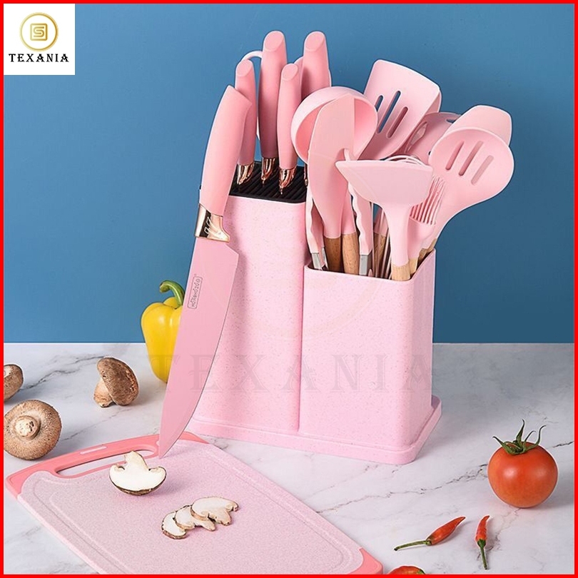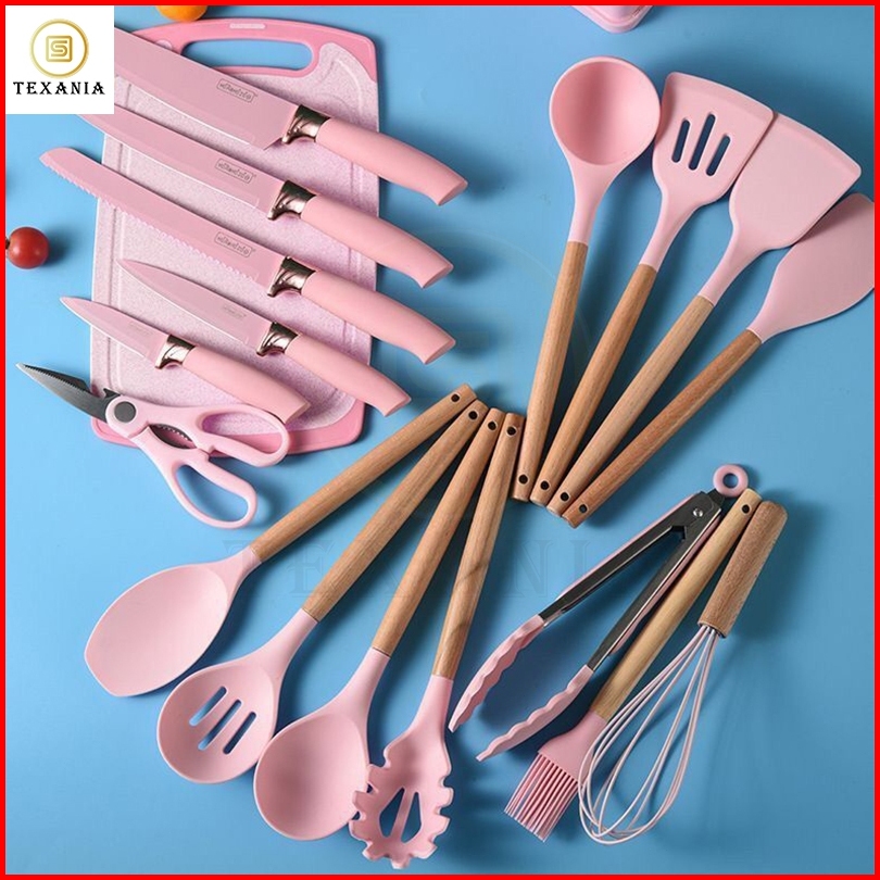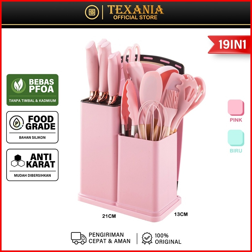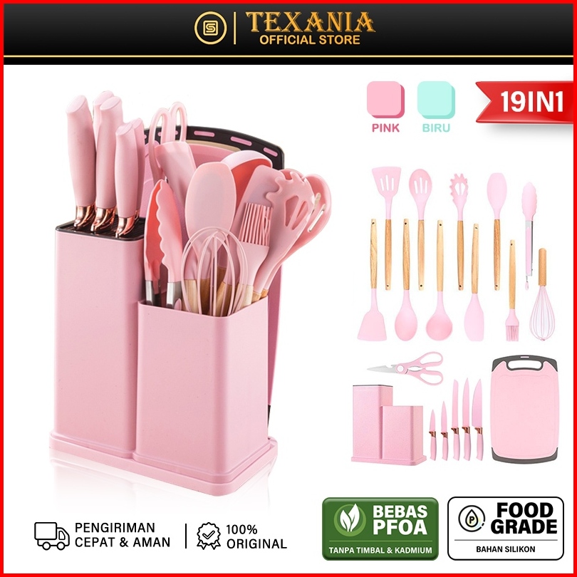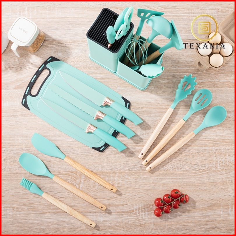 Texania 19 Pcs Kitchen Set Spatula Silikon Set Silicone Utensil Set Premium Include Talenan Alat Dapur Spatula Silikon T