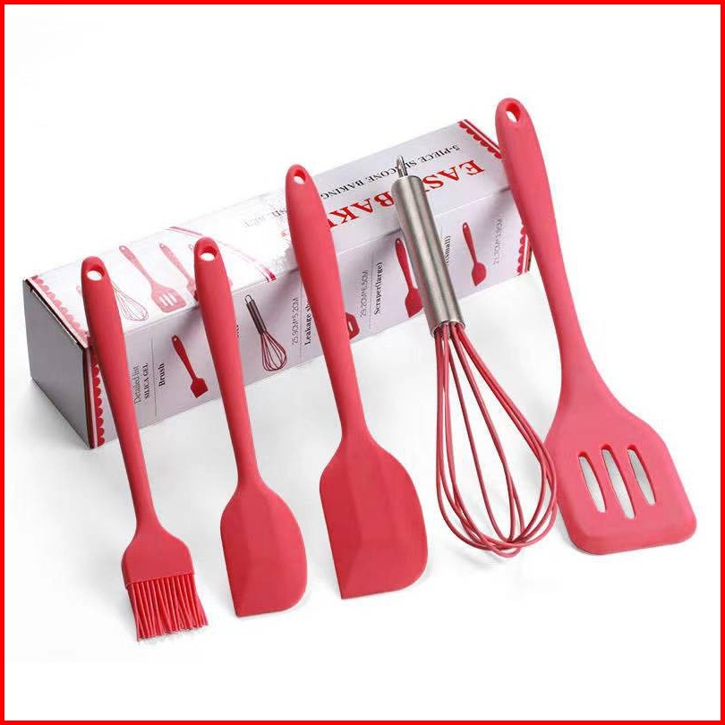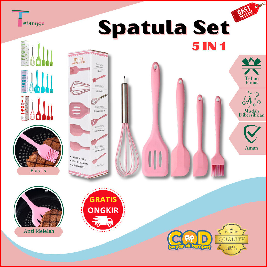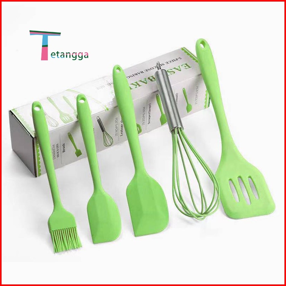 Set Spatula Peralatan Masak Sutil Silikon Non Stick Cooking Tools Isi 5 Pcs Kitchenware Spatula Set