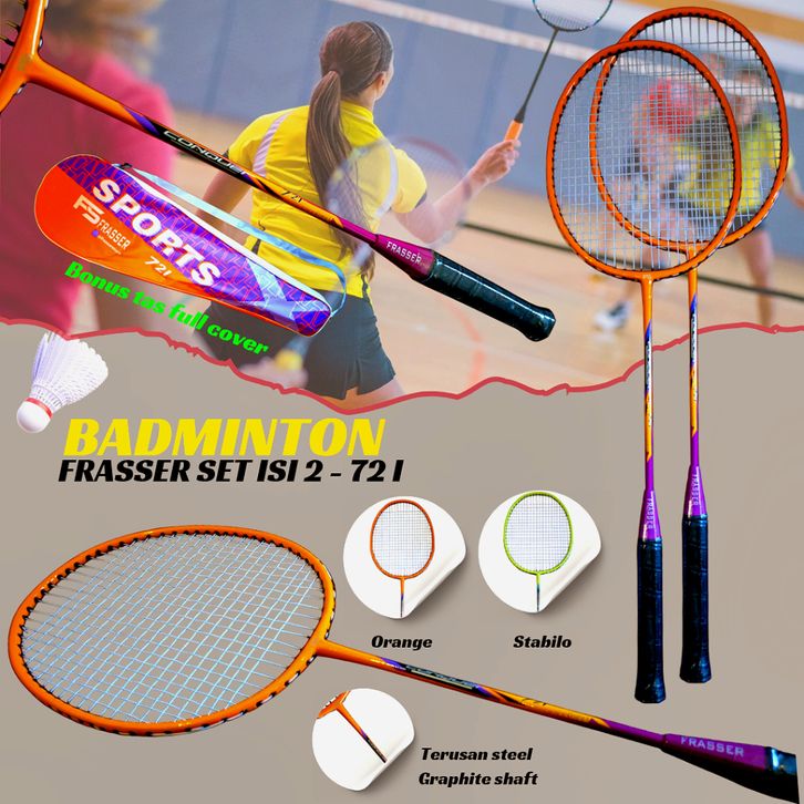 Raket Badminton Conquer 72 l 1 set Isi 2 Bonus Full Cover