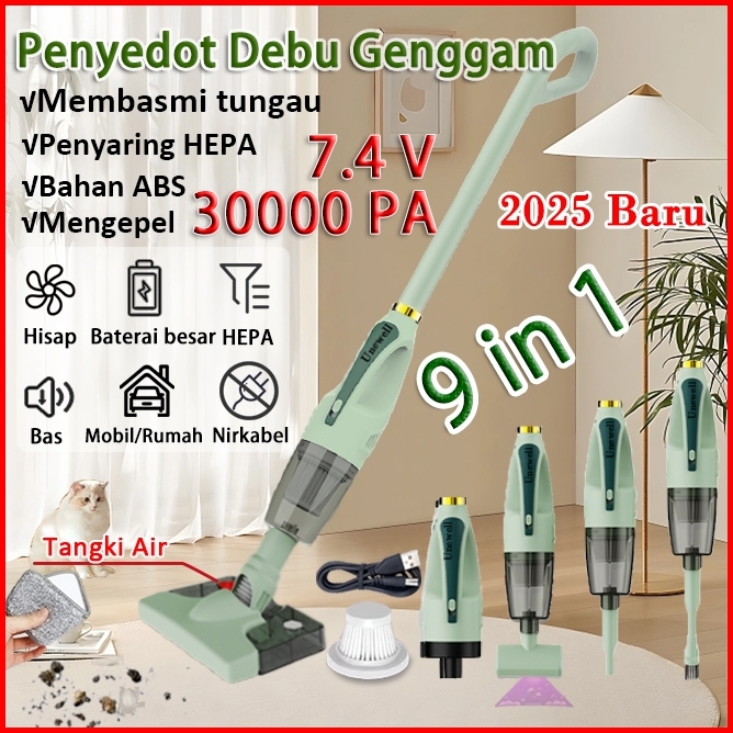 Unewell 2025 Vacum Cleaner Penyedot Debu 30000pa 7.4v 9 In 1 Cordless Portable Mobil Rumah