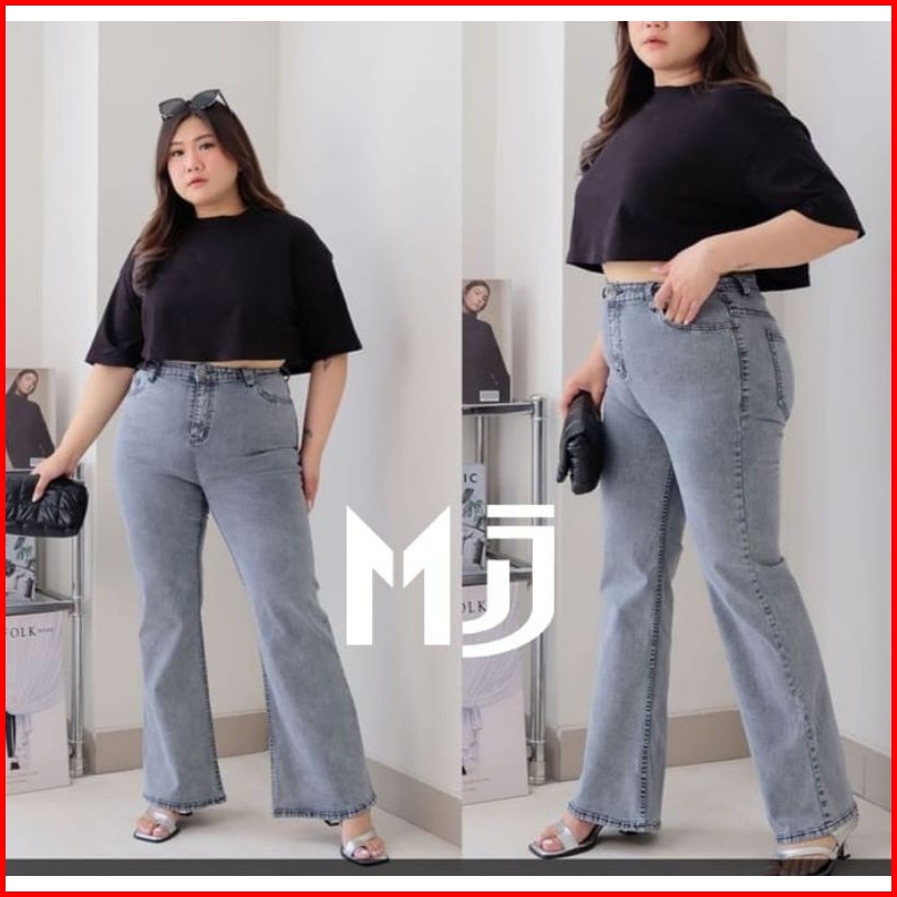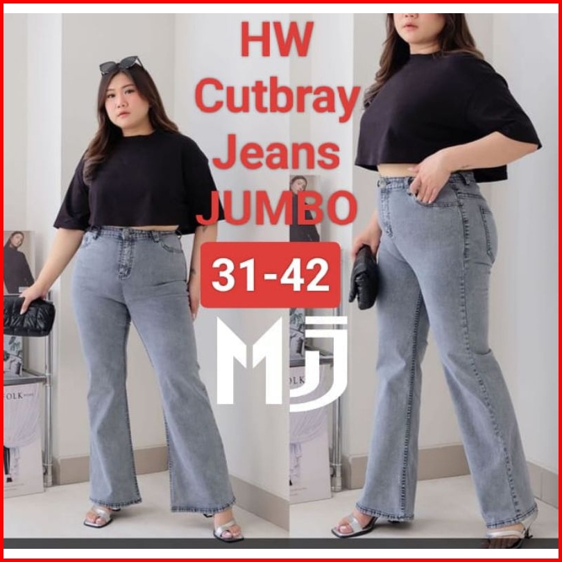 M Jeans Celana Panjang Cutbray Wanita Jumbo Highwaist Big Size Terbaru 31-42