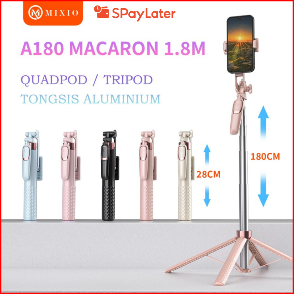 Mixio A180 Quadpod Macaron 180cm Tripod Tongsis Bluetooth Premium Remote Multifungsi Selfie Stick Aluminium 1.8m