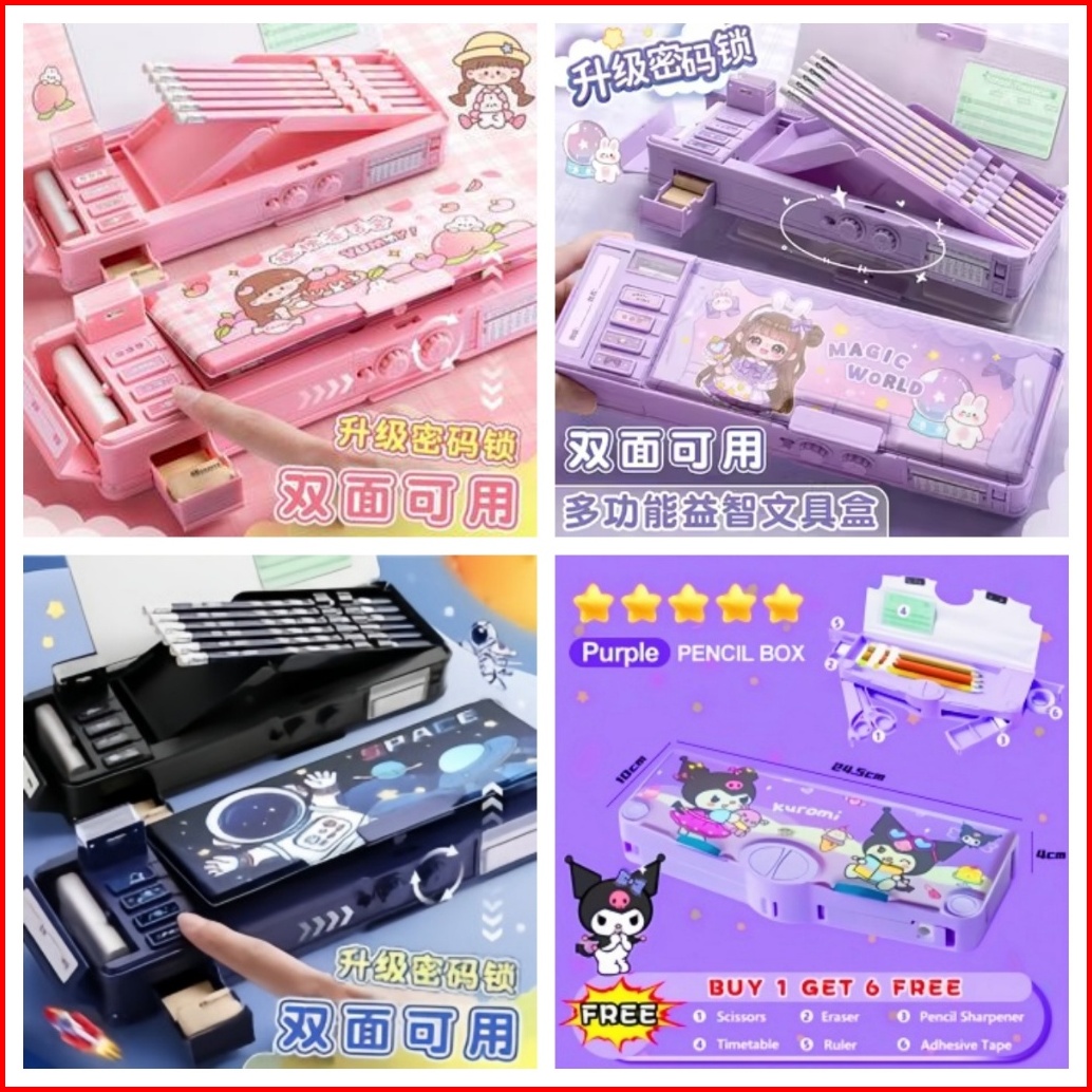 Tempat Pensil Multifungsi Motif Unicorn Dinosaurus Astronot Untuk Anak Tk Kotak Pensil Pola Kartun Lapisan Ganda Tunggal