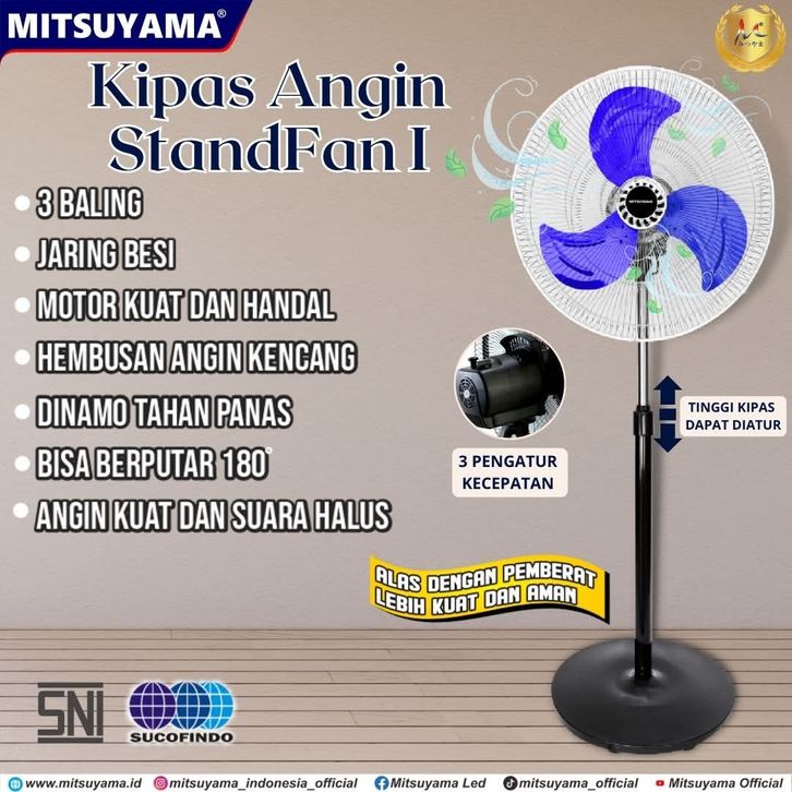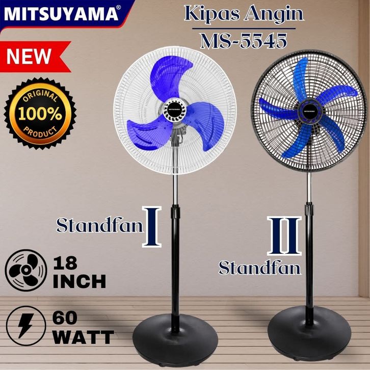 Kipas Angin 18 Inci Baling Besi Mitsuyama 5545 Stand Fan Series l & ll Kipas Berdiri Elektrik