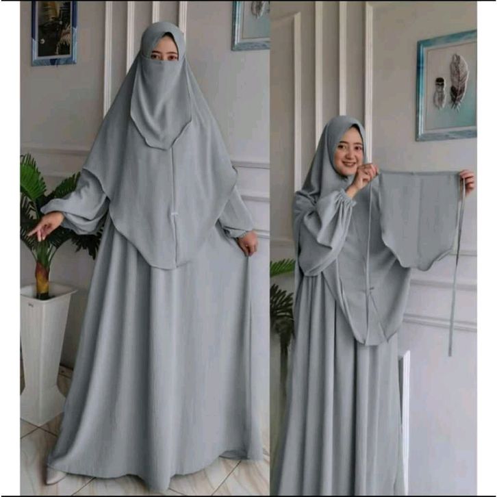Gamis syari set hijab terbaru Sahra syari terlaris kekinian dan fashionable bahan Crinkle Airflow