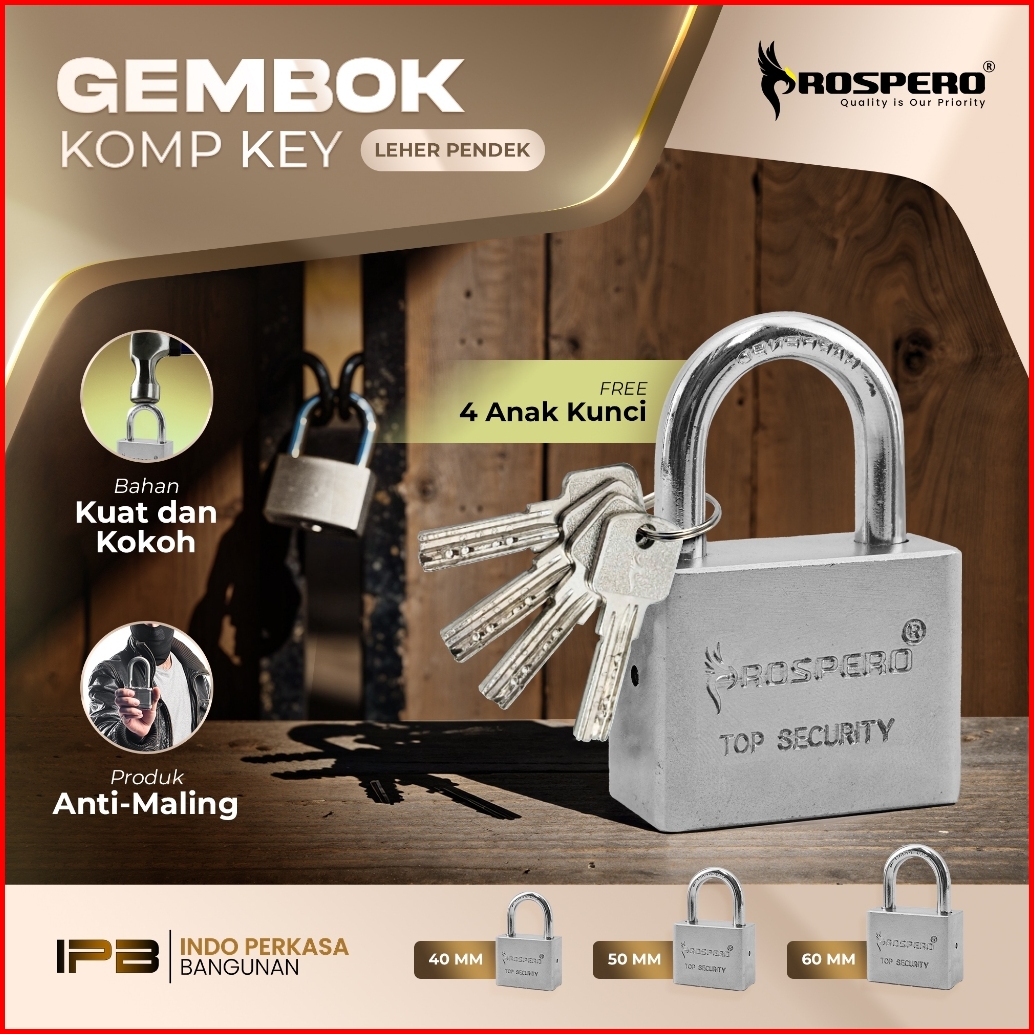 Prospero Kunci Gembok Rumah Anti Rust Iron Pad Lock Gembok Putih Leher Panjang Pendek 398