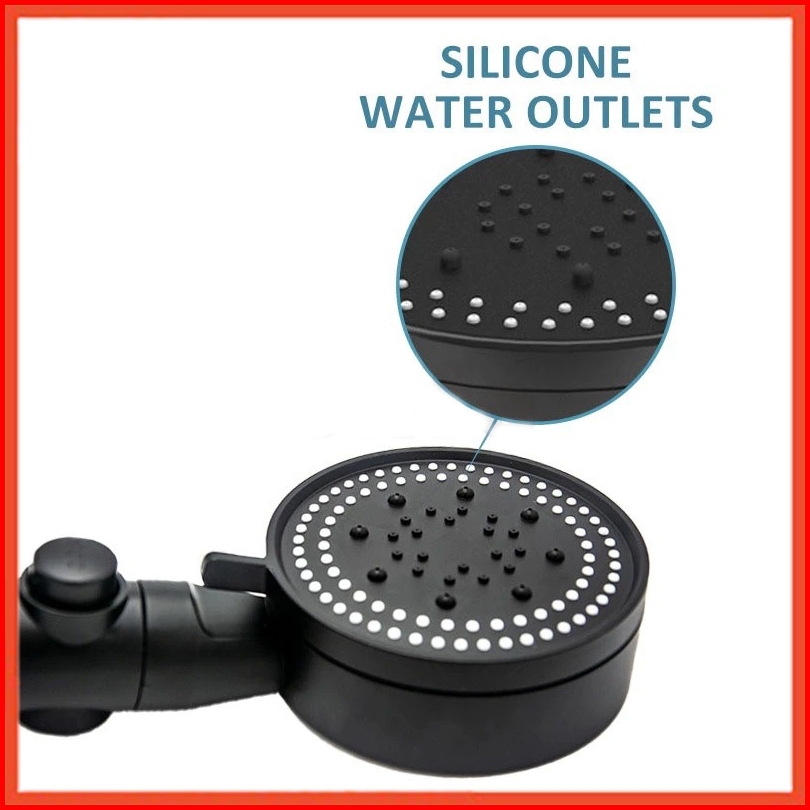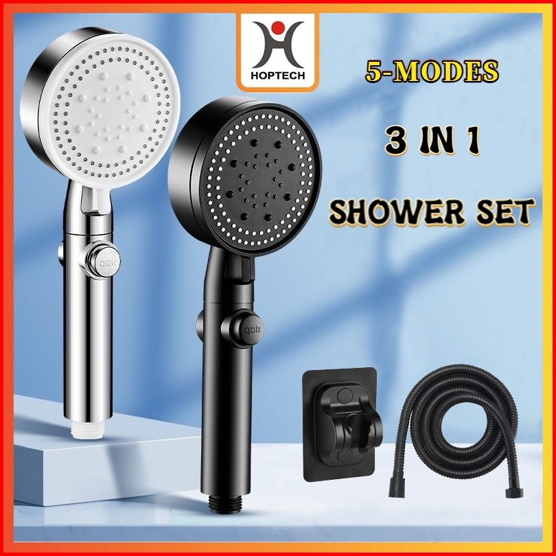Hoptech - Shower Set Kamar Mandi 5 Mode Hitam Silver Selang Portable 3in1 Premium