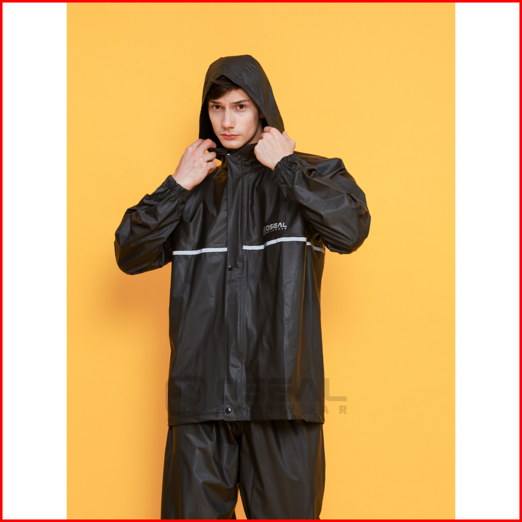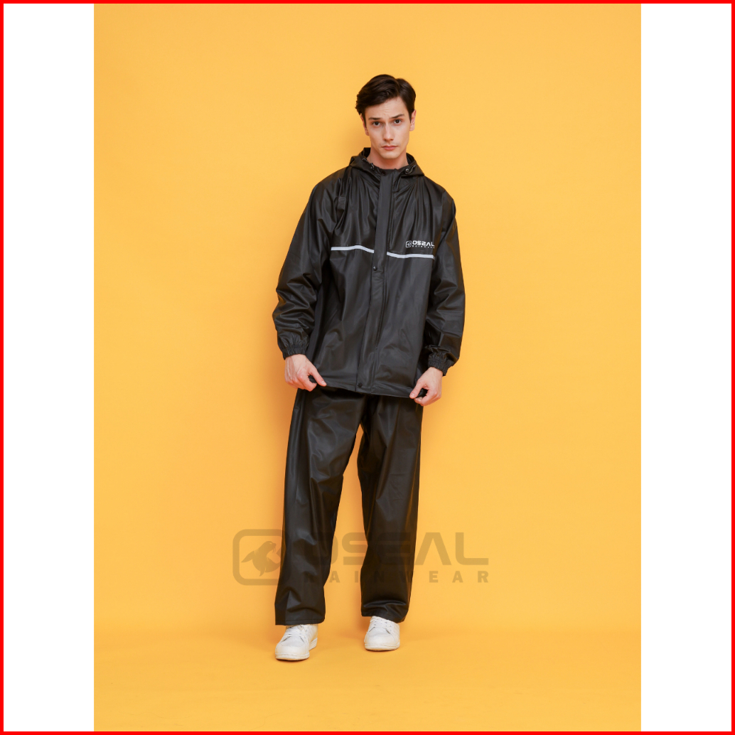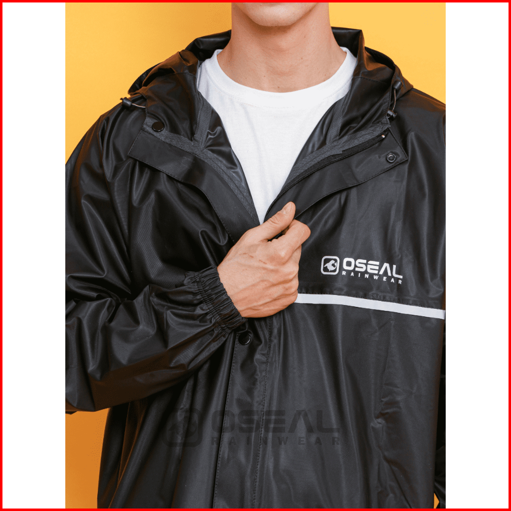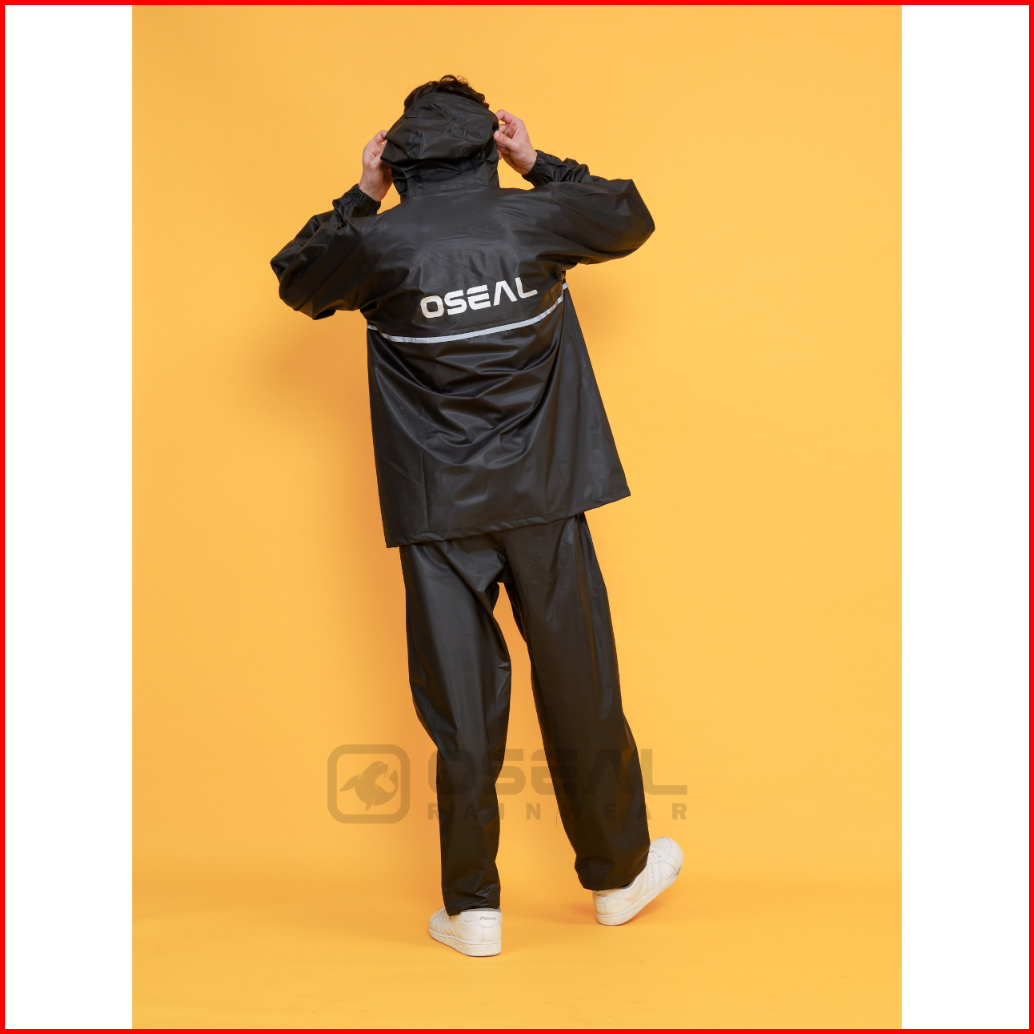 Jas Hujan Oseal Full Seal Raincoat Mantel Pria Wanita Dewasa Shine Series Hitam