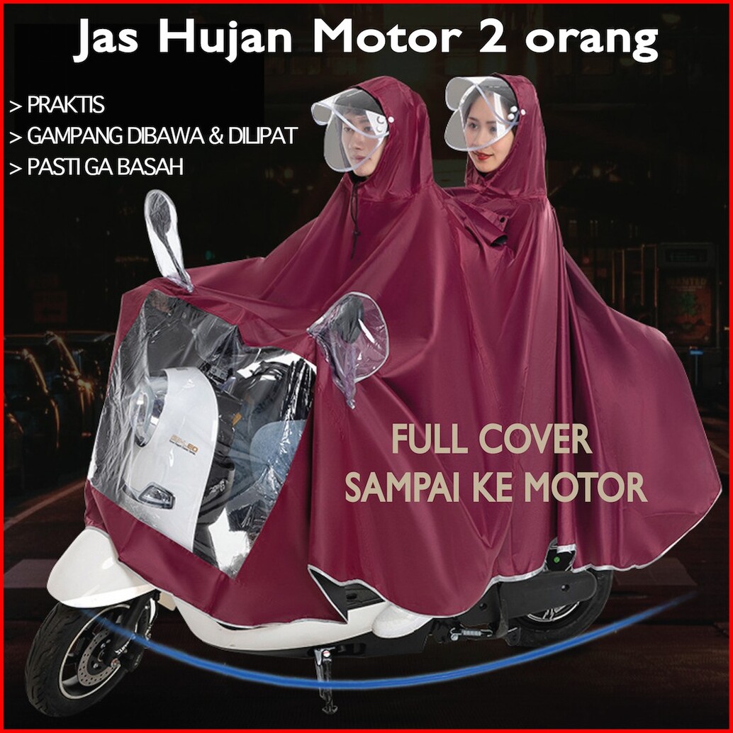 Jas Hujan Motor 2 Kepala Full Body Motor Double Ponco 2 Kepala Full Cover Motor Raincoat 2-in-1 Coat