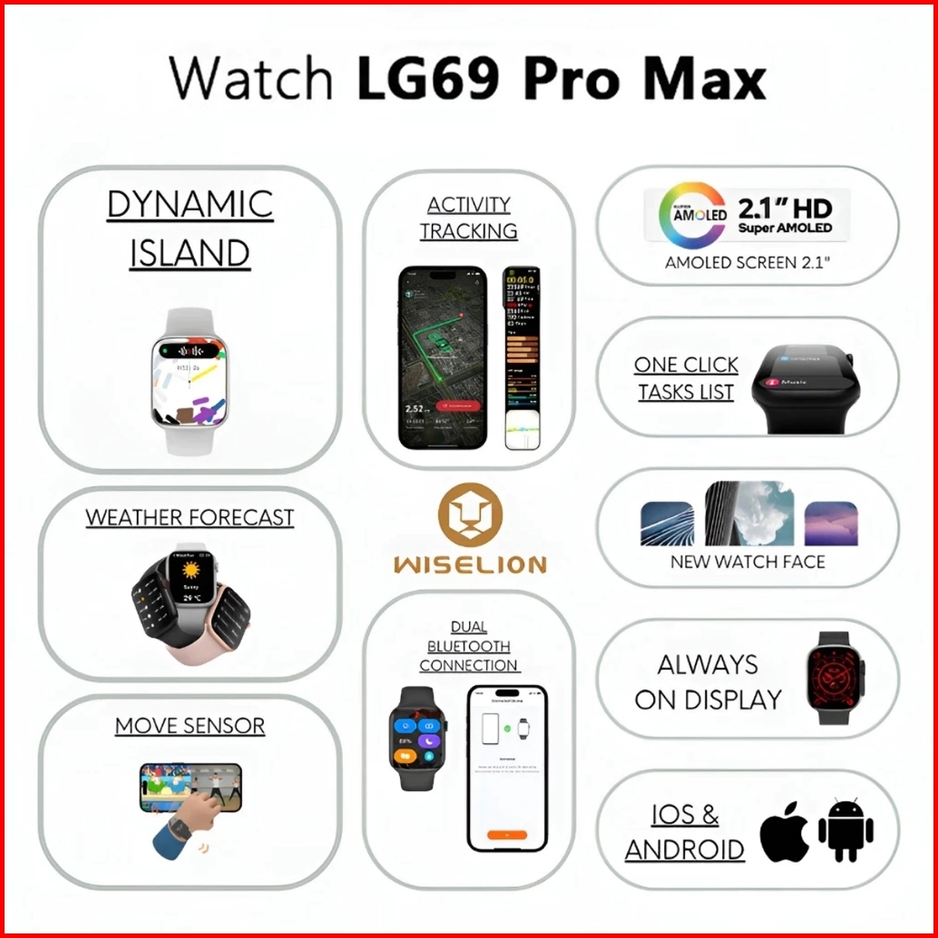 Uufun Smartwatch Lg69 Promax Gps Nfc Support Layar Sentuh 2.1 Inci Hd Hi-fi Sound Music Bluetooth Call Jam Jam Tangan Pi