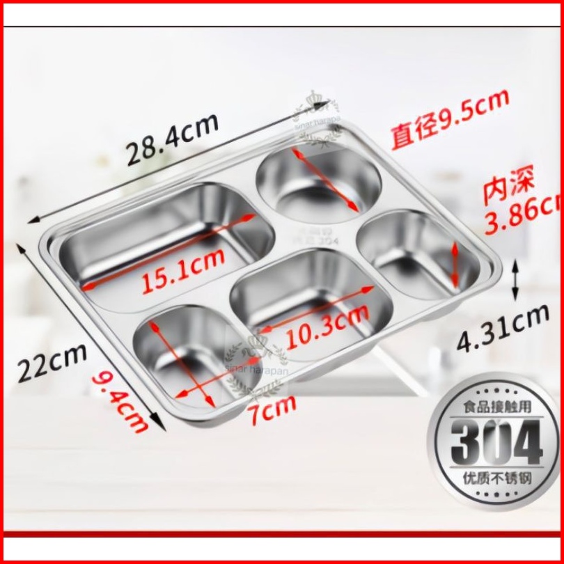 Piring Makan 5 Sekat 100 Stainless Steel