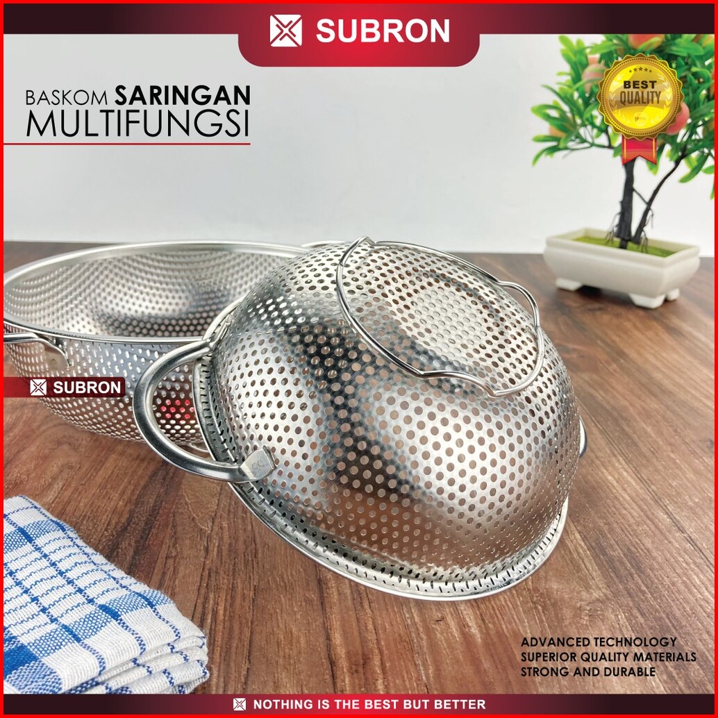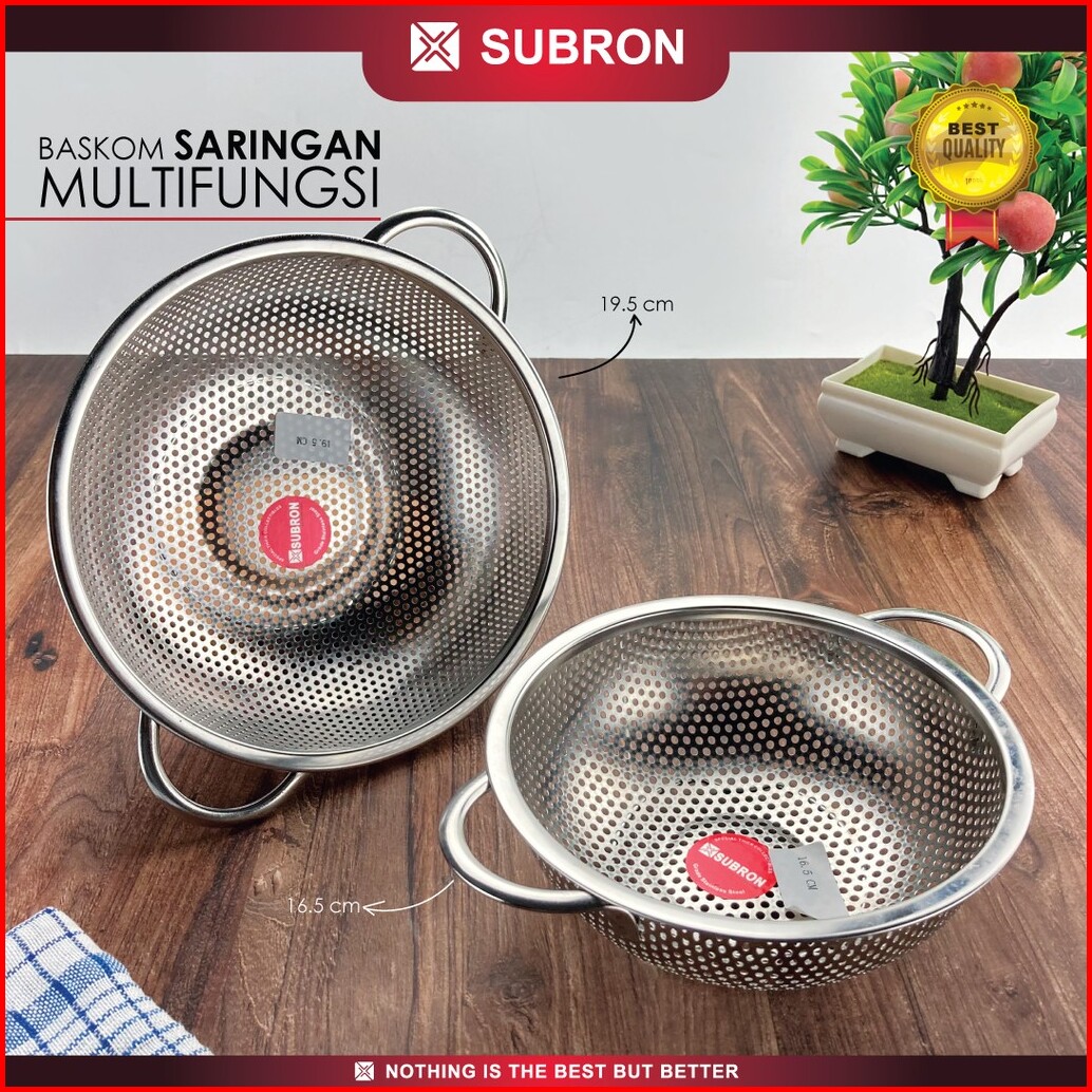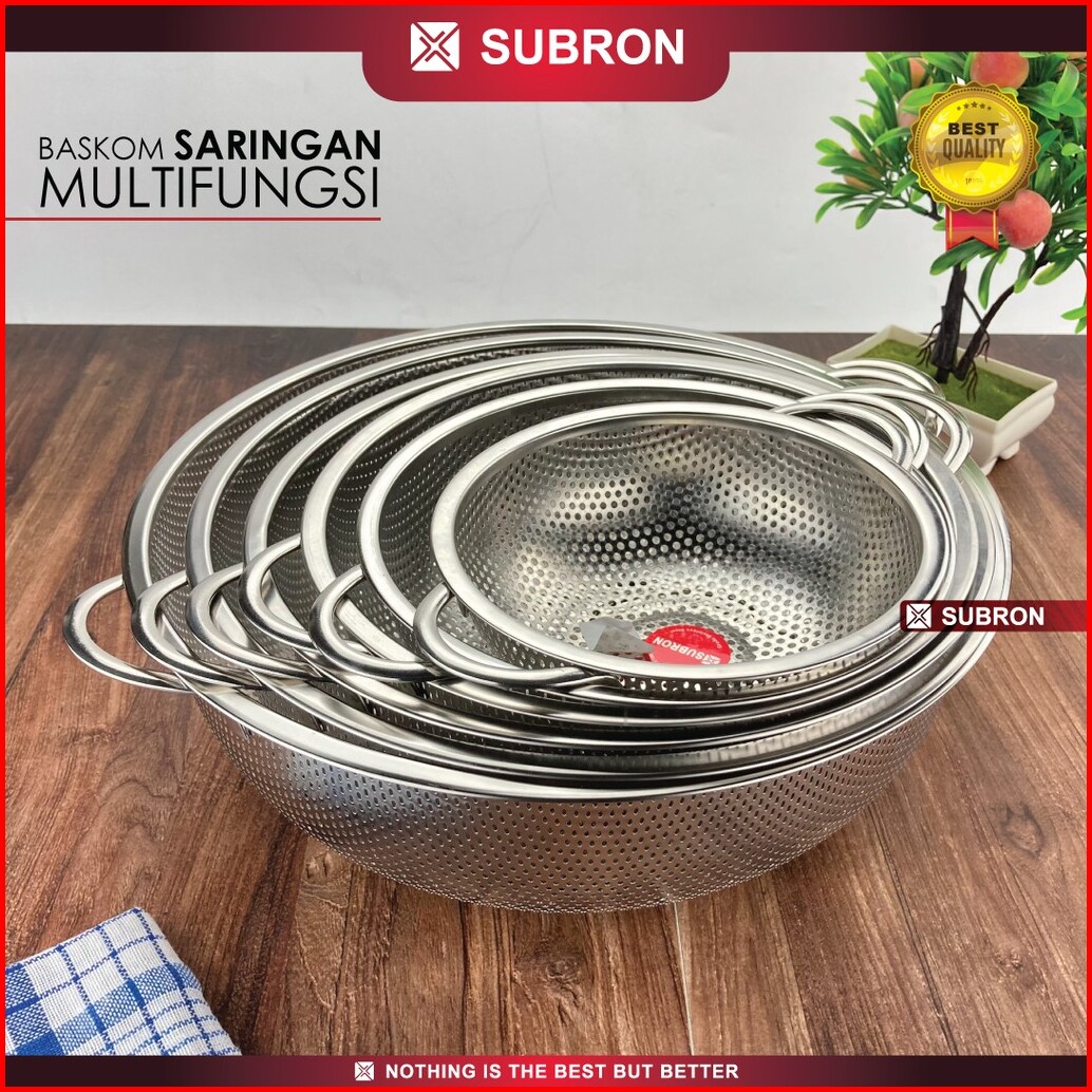 Subron Saringan Multifungsi 16.5cm 19.5cm Baskom Lubang Cuci Buah Sayur Daging Kelapa Stainless