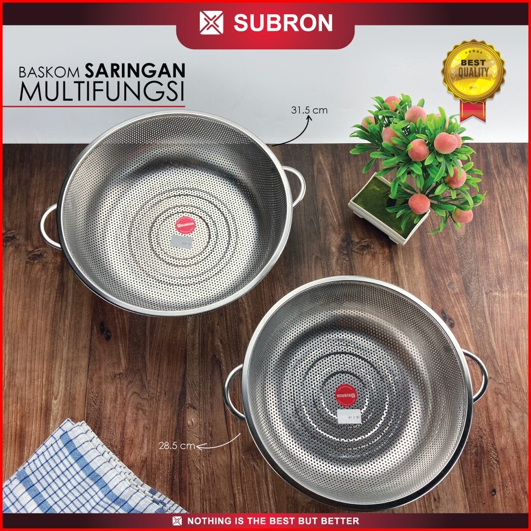 Subron Saringan Multifungsi 28.5cm 31.5cm Baskom Lubang Cuci Buah Sayur Daging Kelapa Stainless