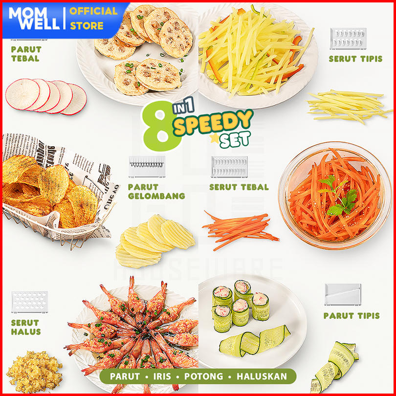 Momwell Vg01 Parutan Sayur Dan Buah 8 In 1 Set
