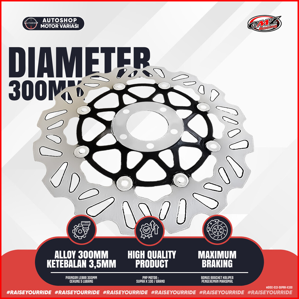 Piringan Cakram Depan 300mm Supra X Old Megapro Old Psm Cekung 5 Lubang Bracket Kaliper