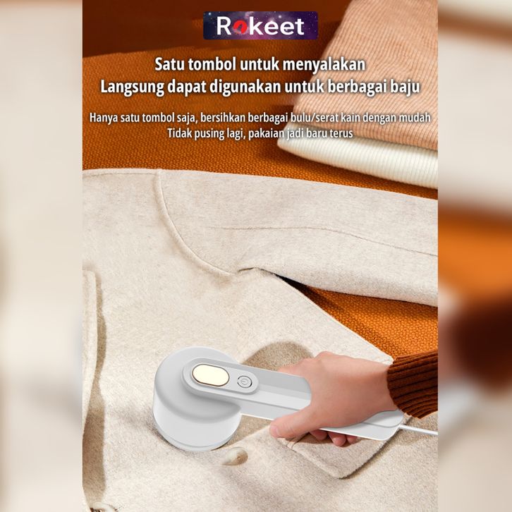 ORI Rokeet Alat Penghilang Bulu Baju Pakaian Electric Rechargeable Fuzz Trimmer Lint Remover