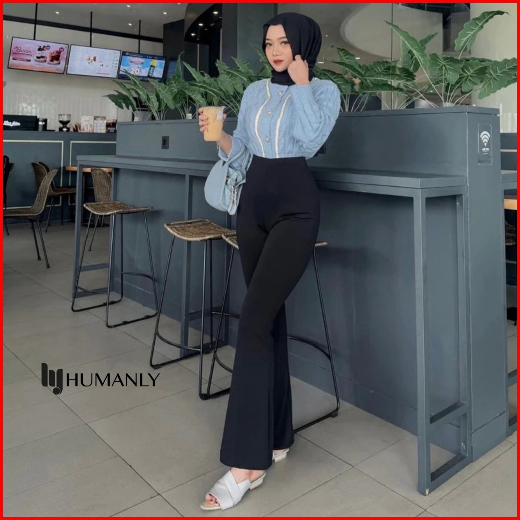 Humanly.co - Flare Pants Highwaist Celana Highwaist Kulot Cutbray Wanita