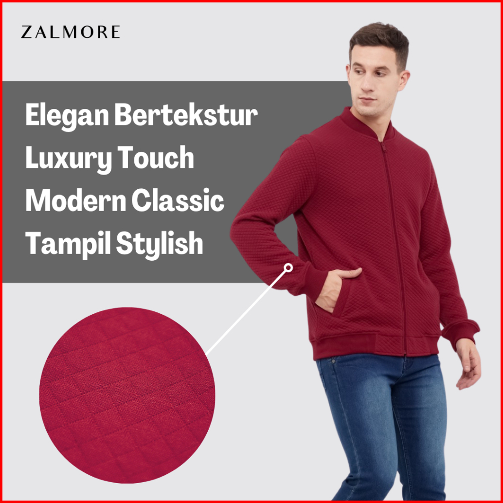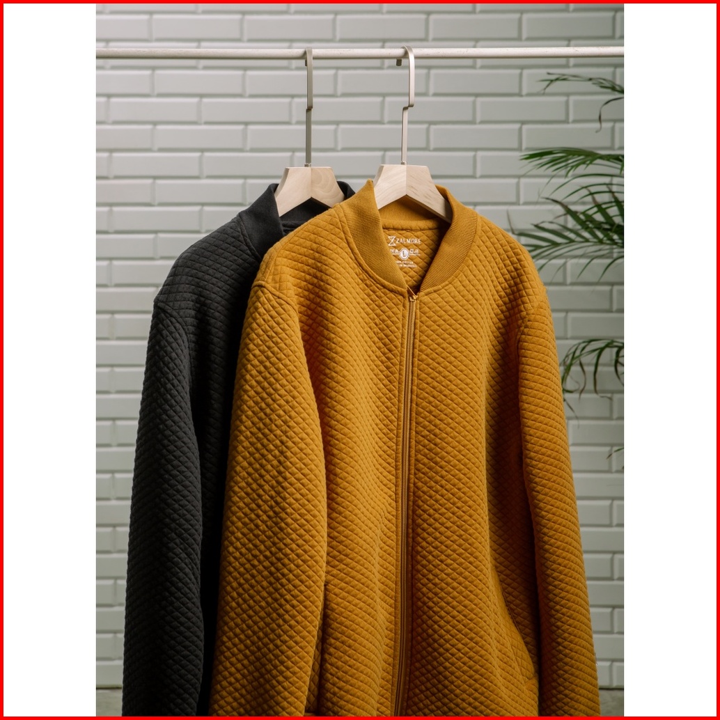 Zalmore Men Basic Bomber Jacket Premium Embossed Luma Cotton - Jaket Bomber Lembut Anti Kusut Luxury