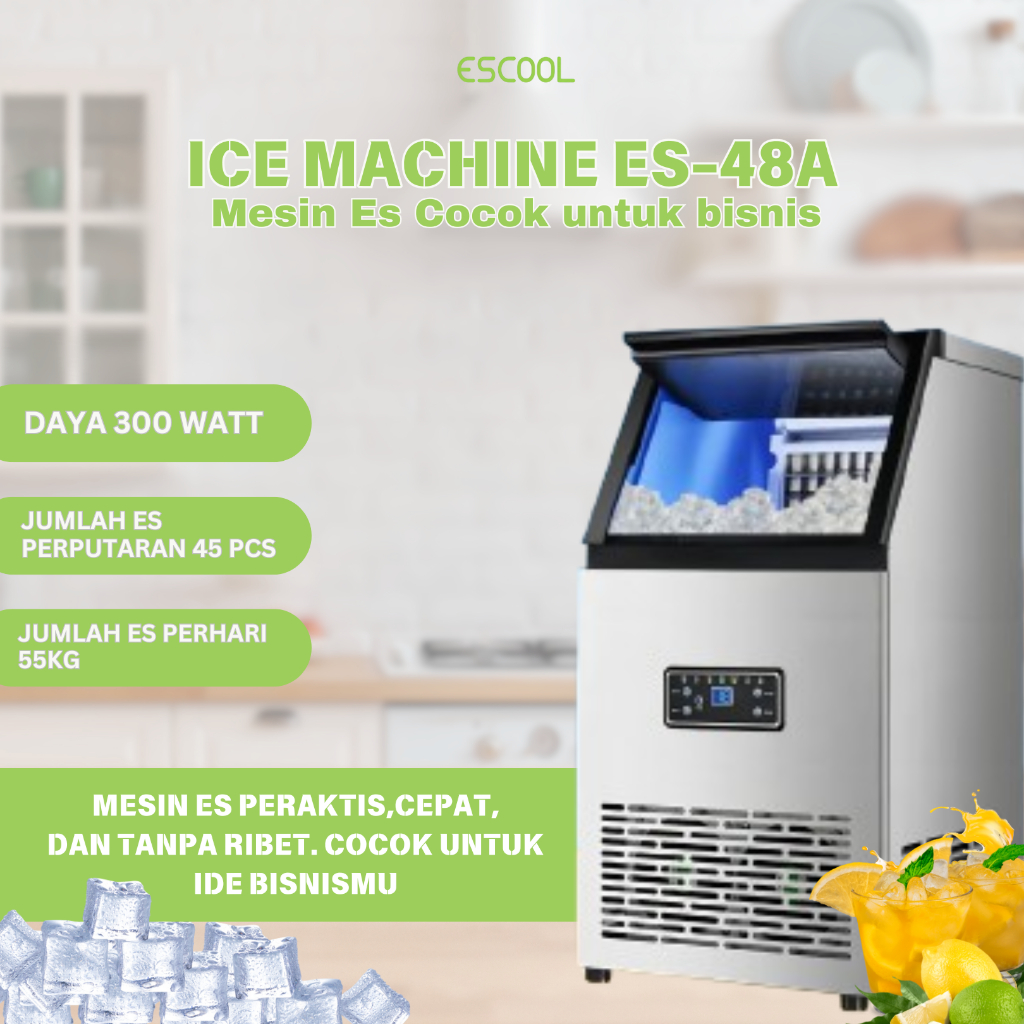 Escool Mesin Es Ice Maker 24 Jam Membuat Es 55Kg, Membuat Es 45 Per Putaran Es-48A