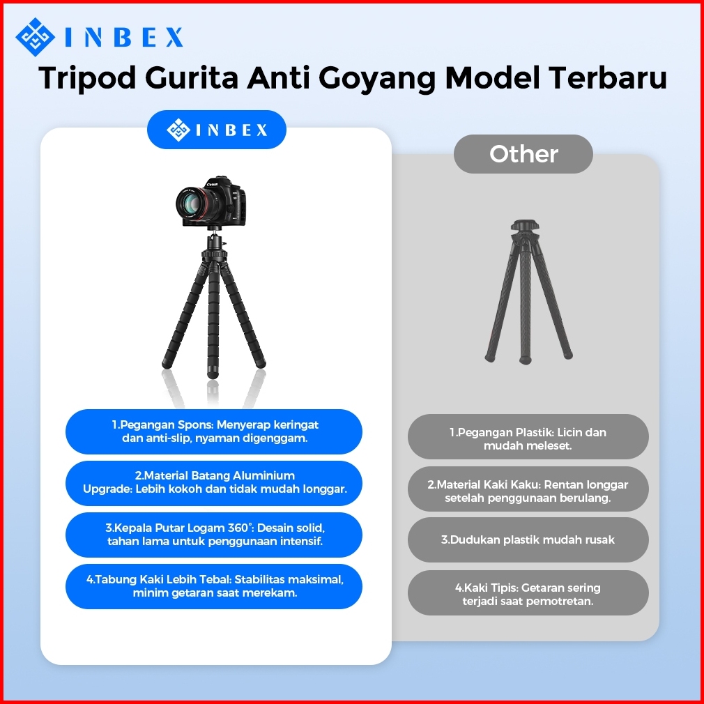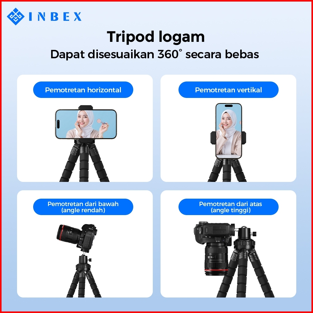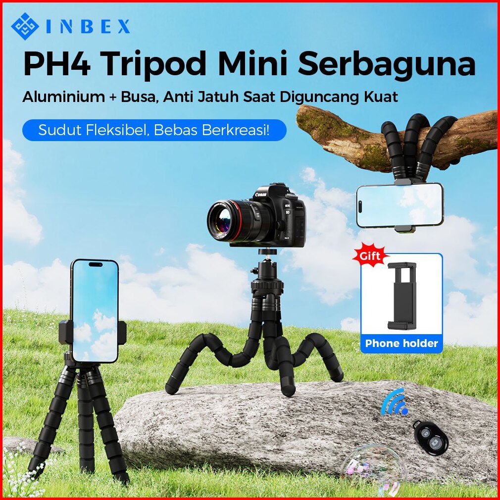 Inbex Ph4 Tripod Gurita Tripod Mini Holder Hp Tripod Anti Goyang Anti Slip Cocok Naik Motor