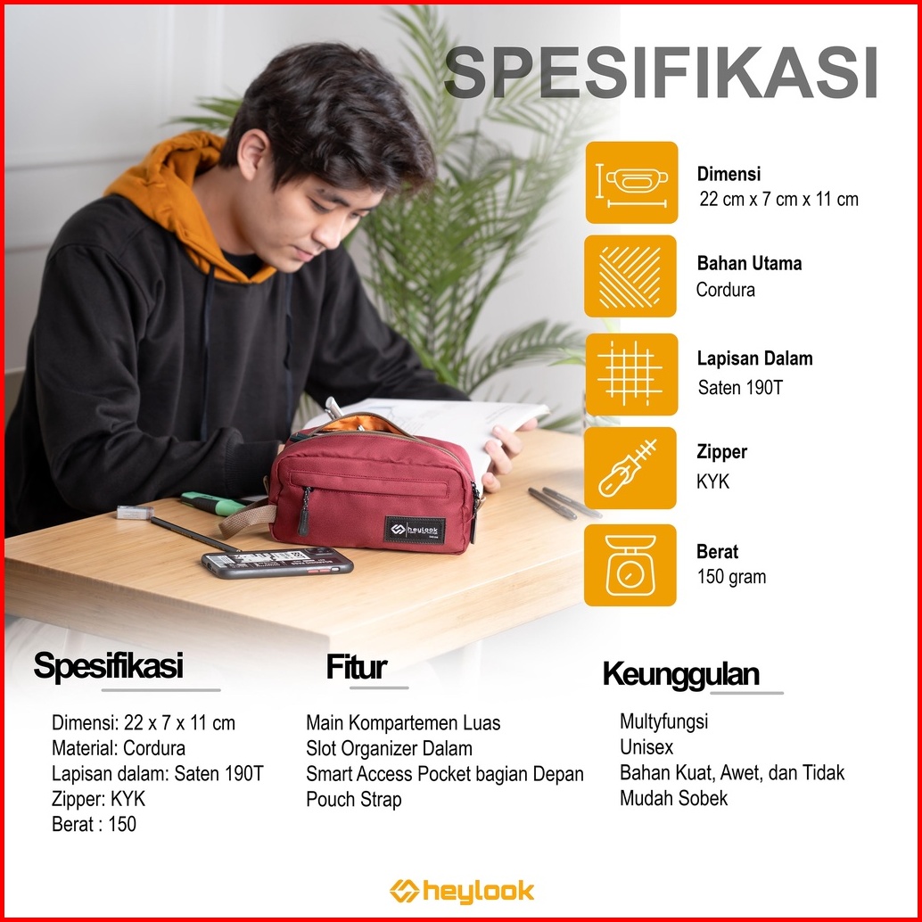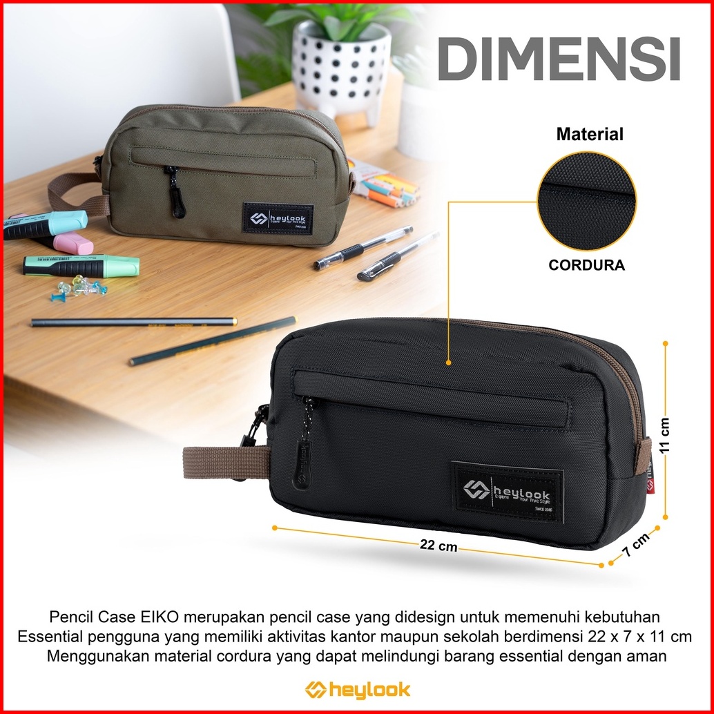 Heylook - Tempat Pensil Eiko Kotak Pensil Pencil Case Kostak Anak Atk Sekolah Kuliah Kantor Kerja - Navy